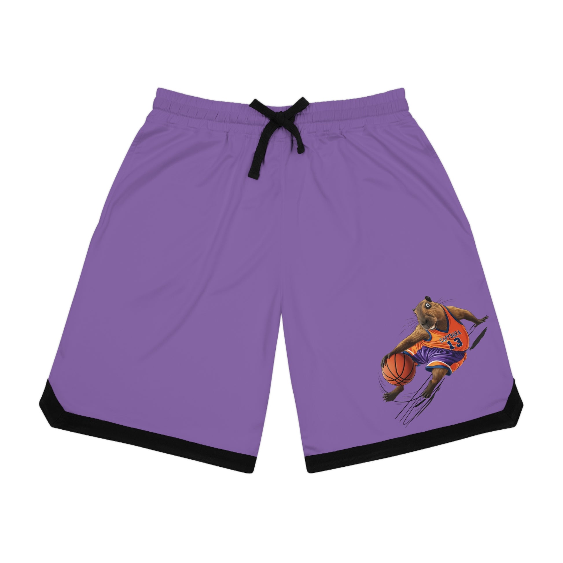 Basketball Rib Shorts with Capybara Design - Purple Sportswear for Kids & Teens