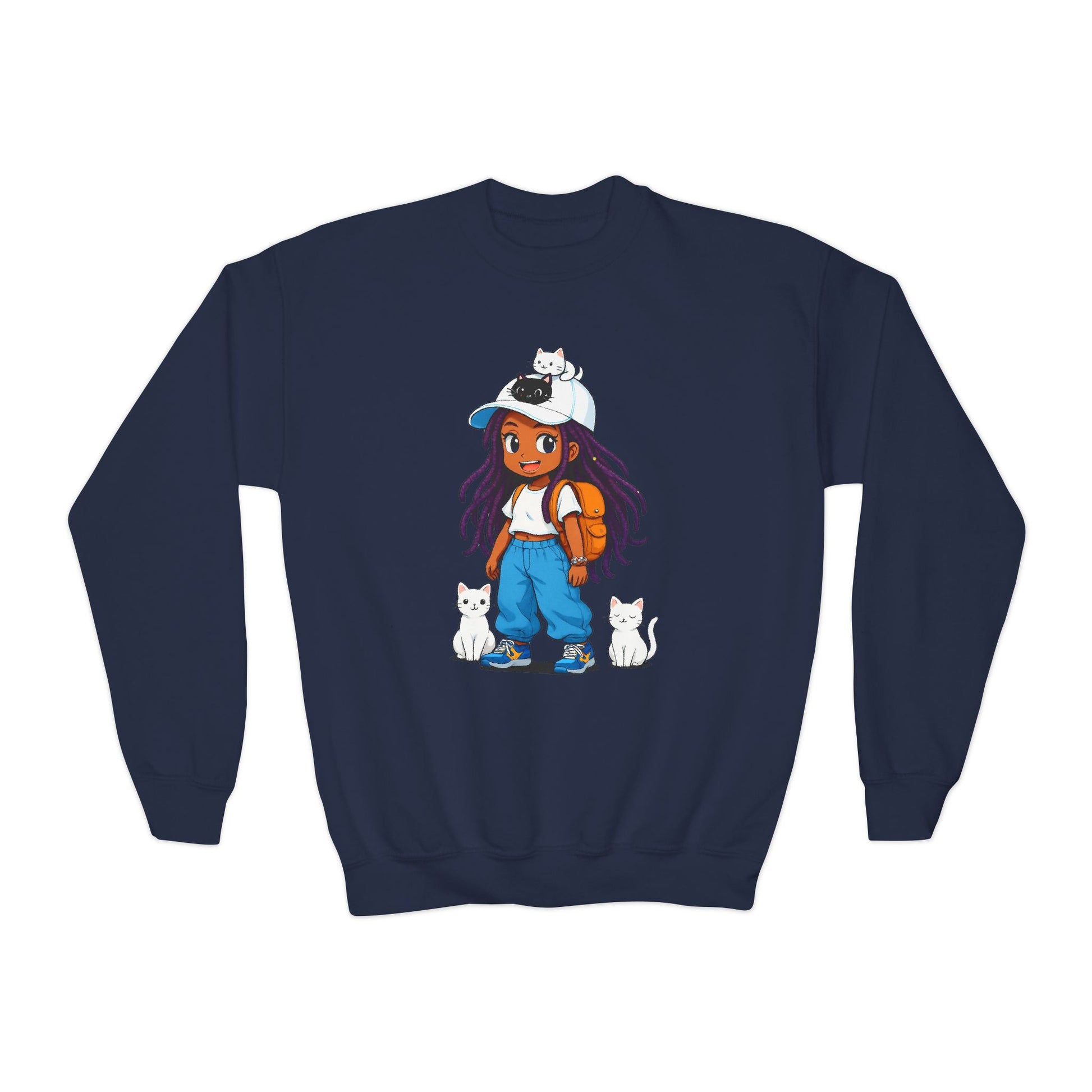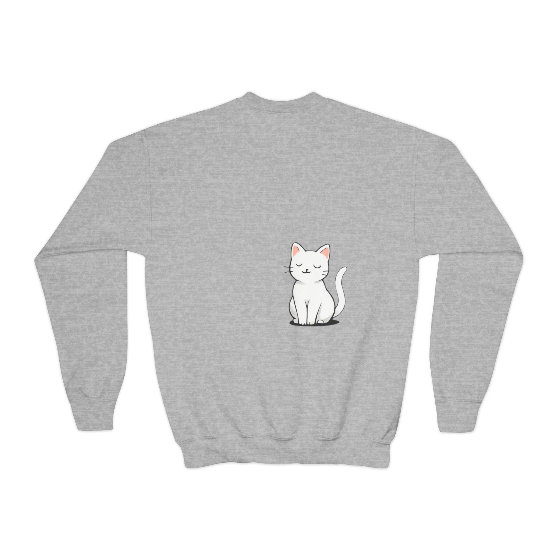 Cute Cat Lover Youth girl Crewneck Sweatshirt, Animal Sweatshirt for girls, Gift for Cat Lovers, Fun Cozy Top, Everyday Wear
