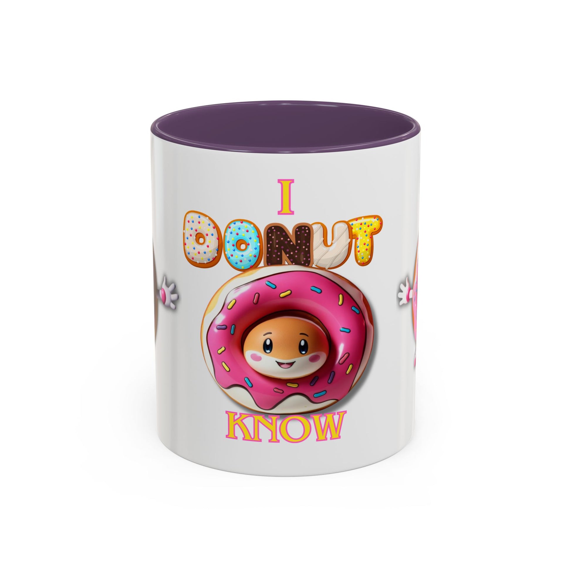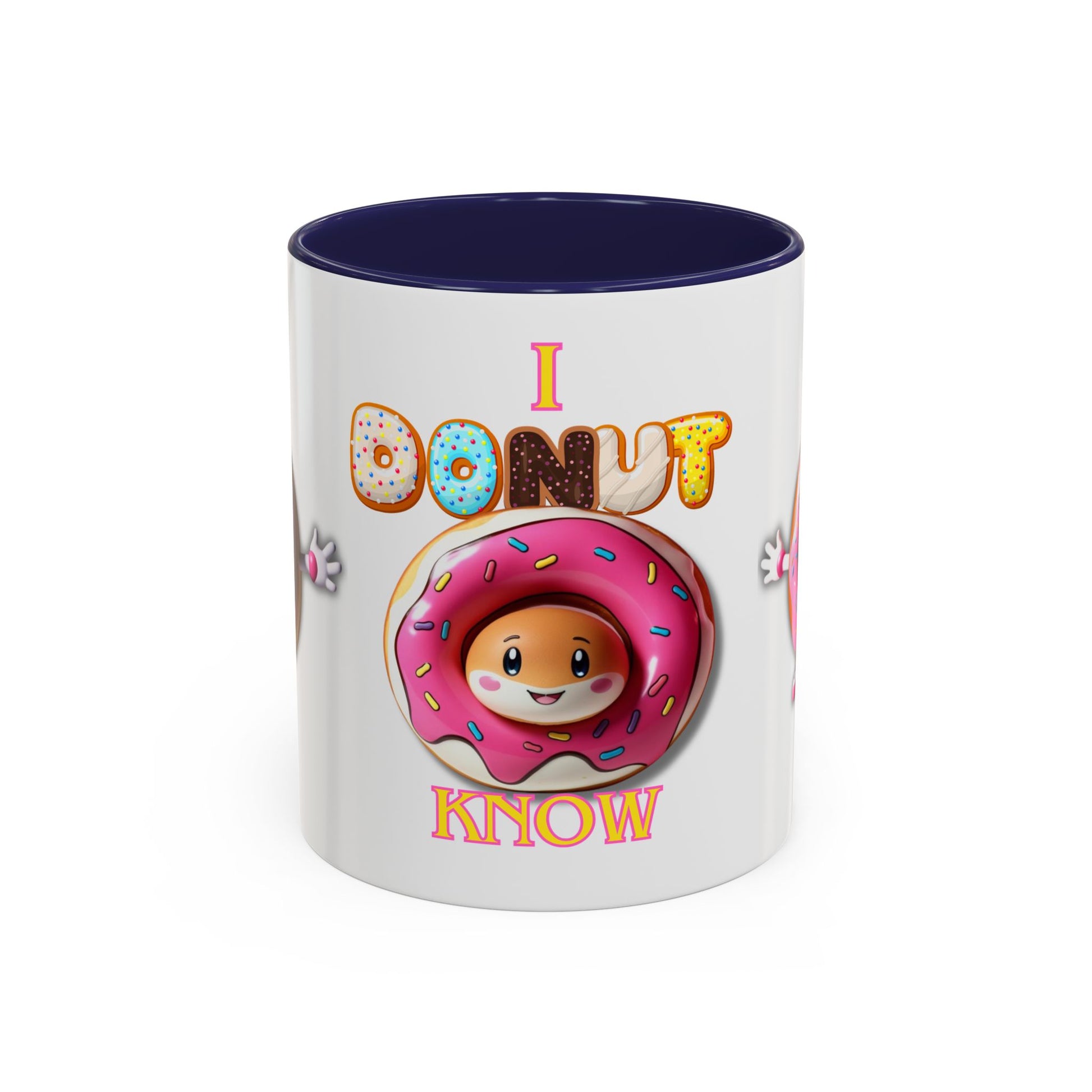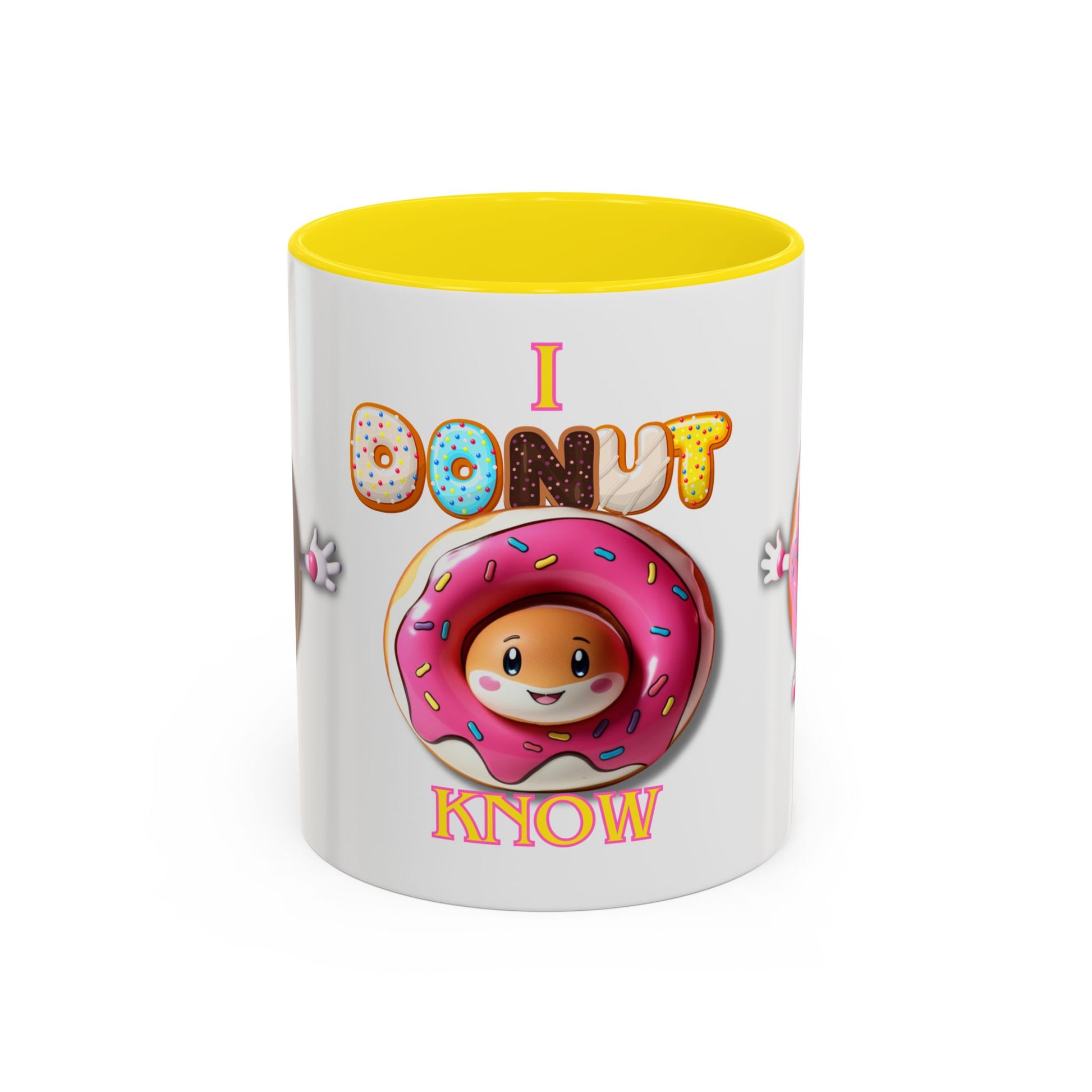Cute Donut Accent Coffee Mug - I Donut Know - Fun Gift for Coffee Lovers