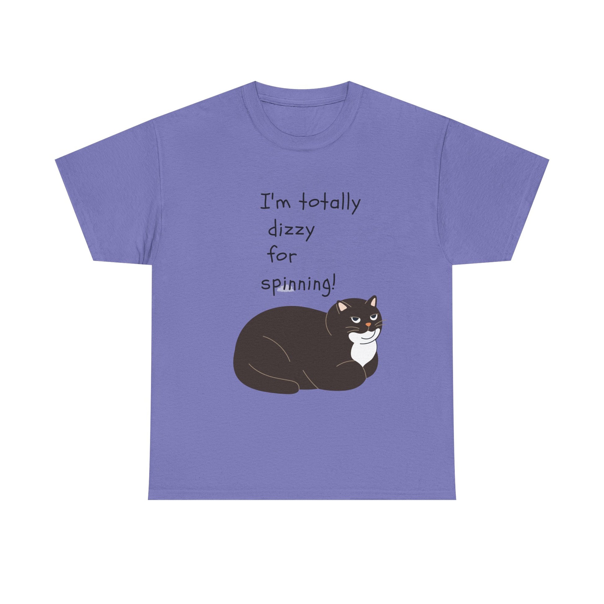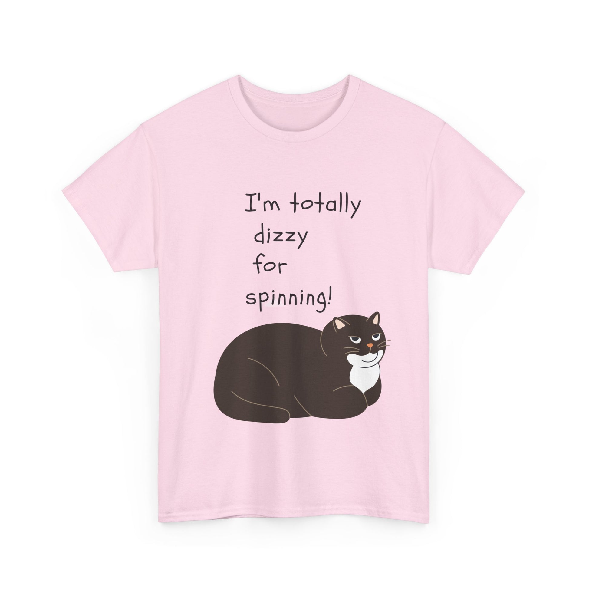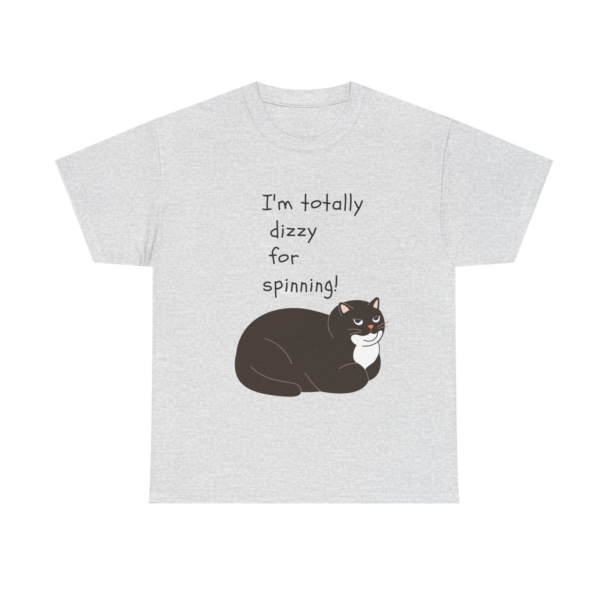 Funny Cat Tee - "I'm Totally Dizzy for Spinning!" Unisex Heavy Cotton Shirt