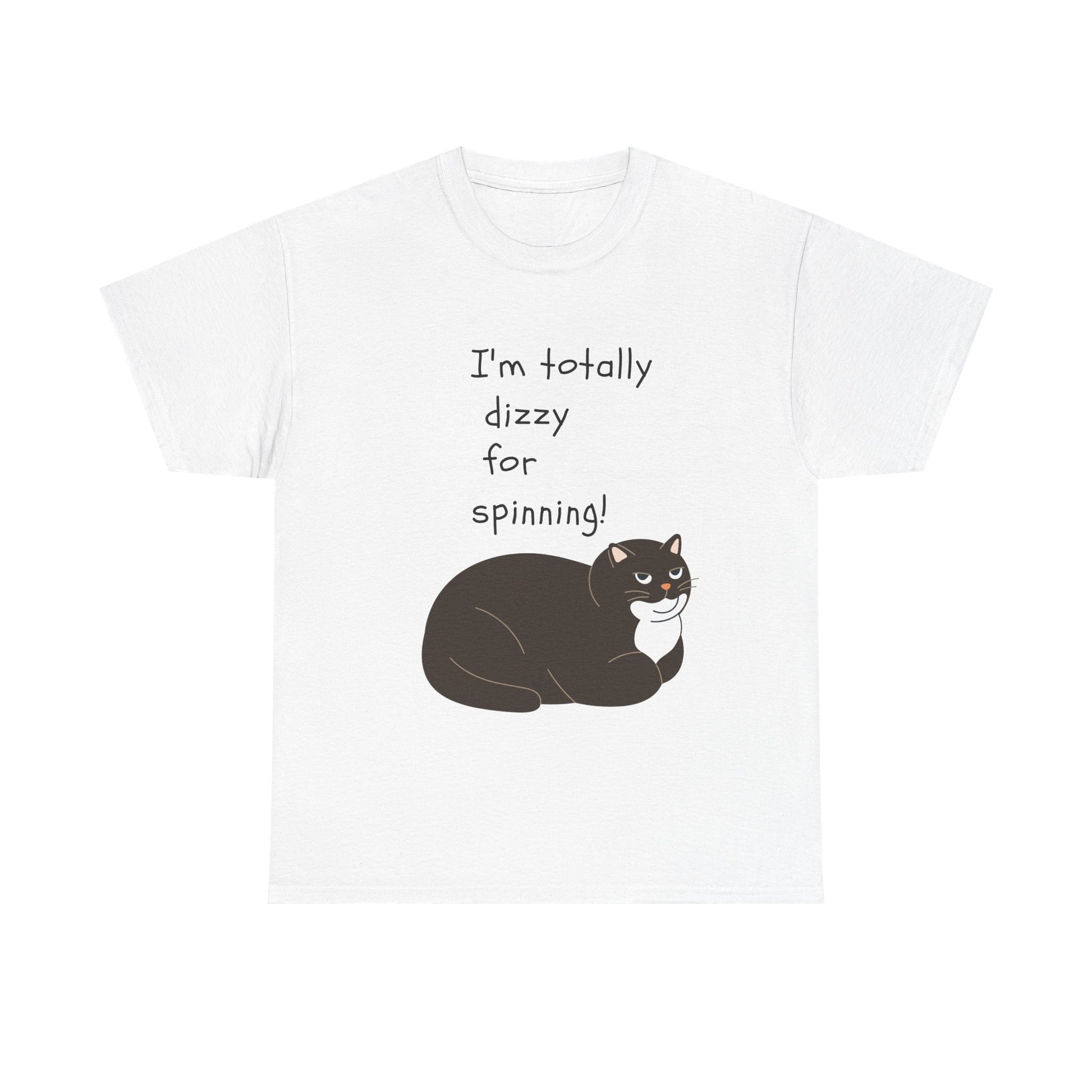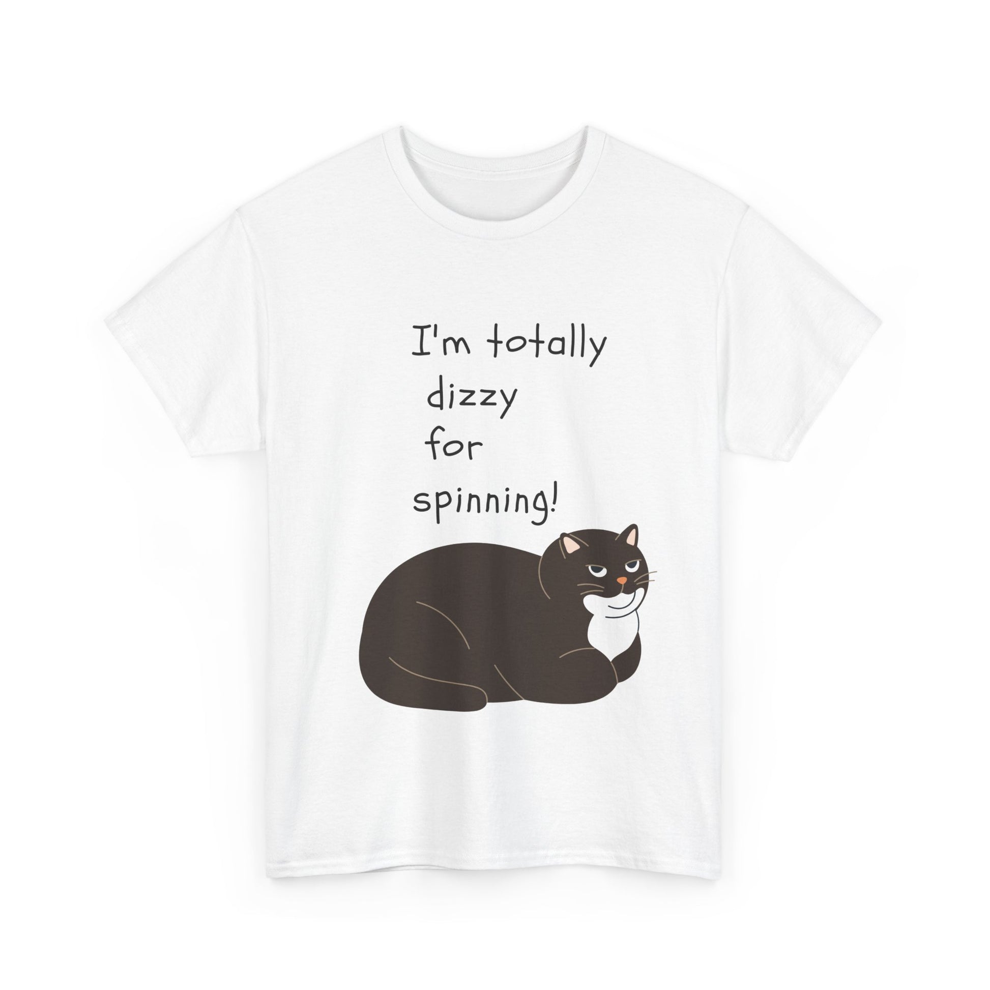 Funny Cat Tee - "I'm Totally Dizzy for Spinning!" Unisex Heavy Cotton Shirt