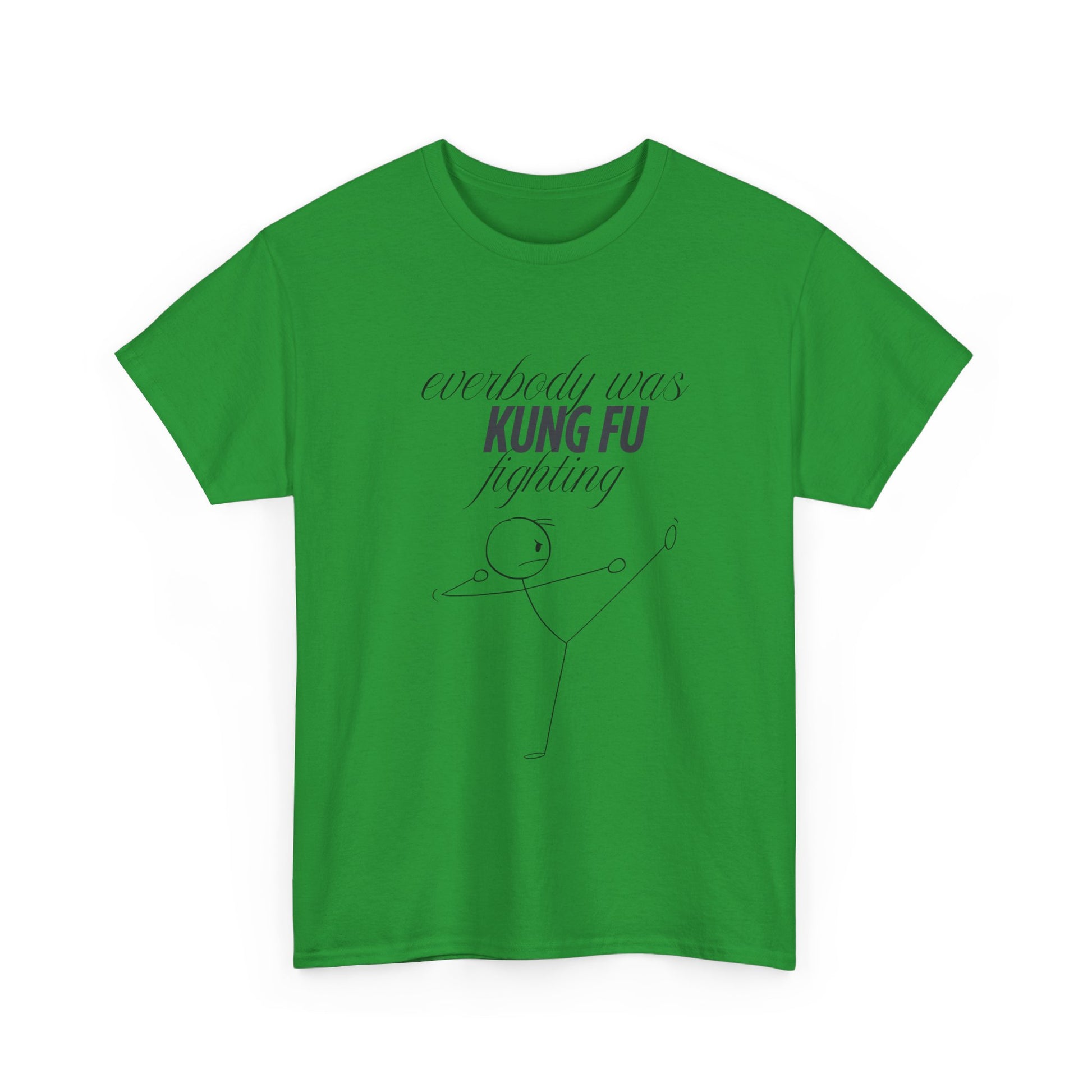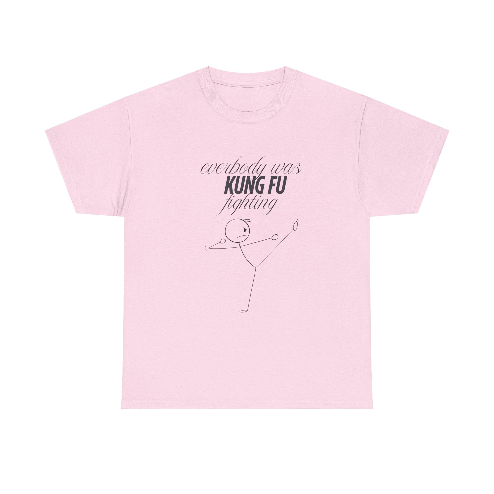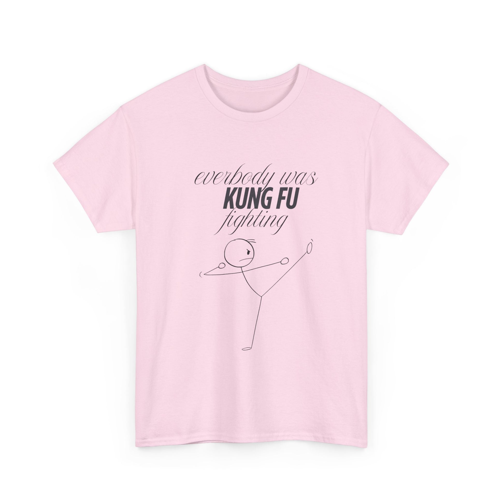 A funny and quirky T-Shirt featuring the phrase 'every body was kungfu fighting'. Perfect for those who appreciate humor and want to add a playful touch to their wardrobe. This T-Shirt is ideal for casual wear and can be a great conversation starter. Relevant for casual outings, parties, and everyday wear.