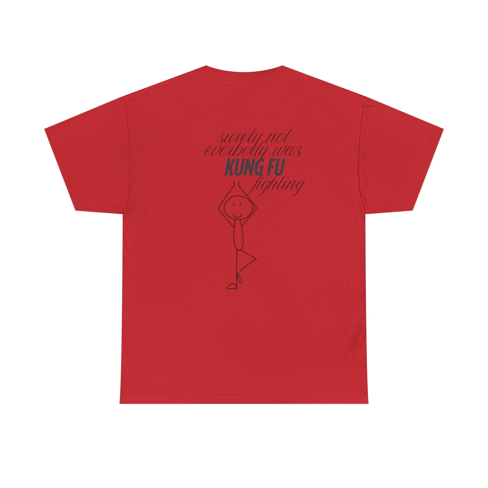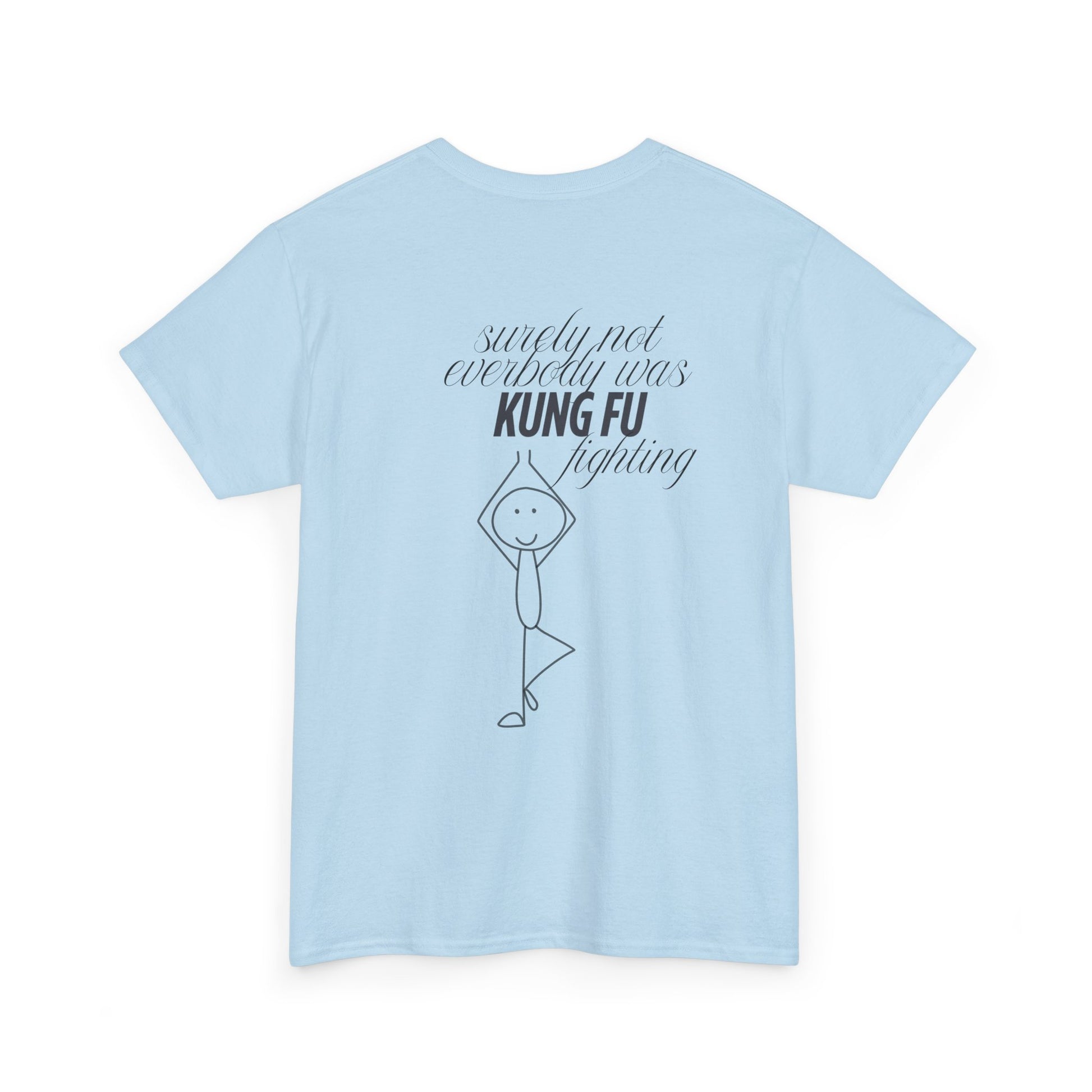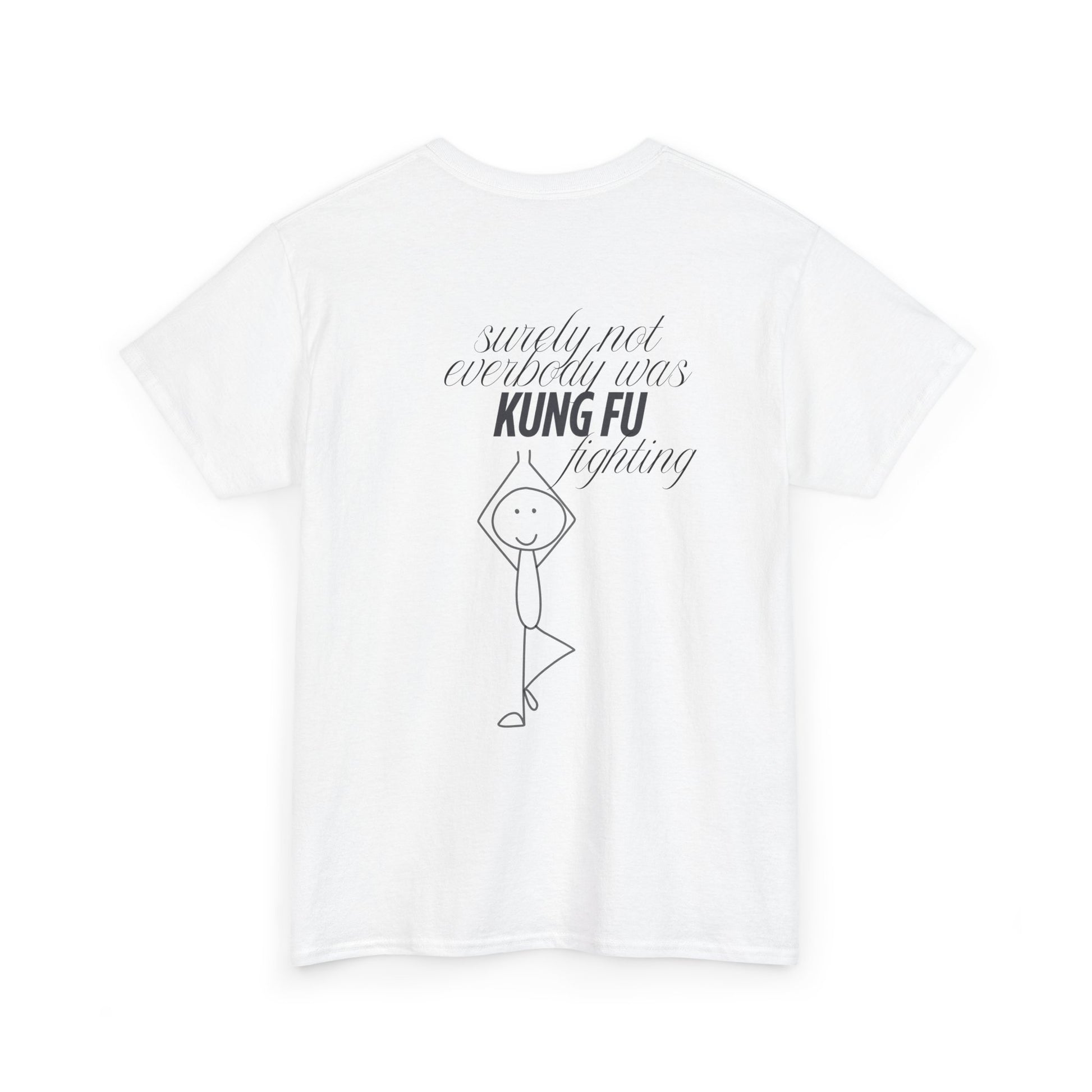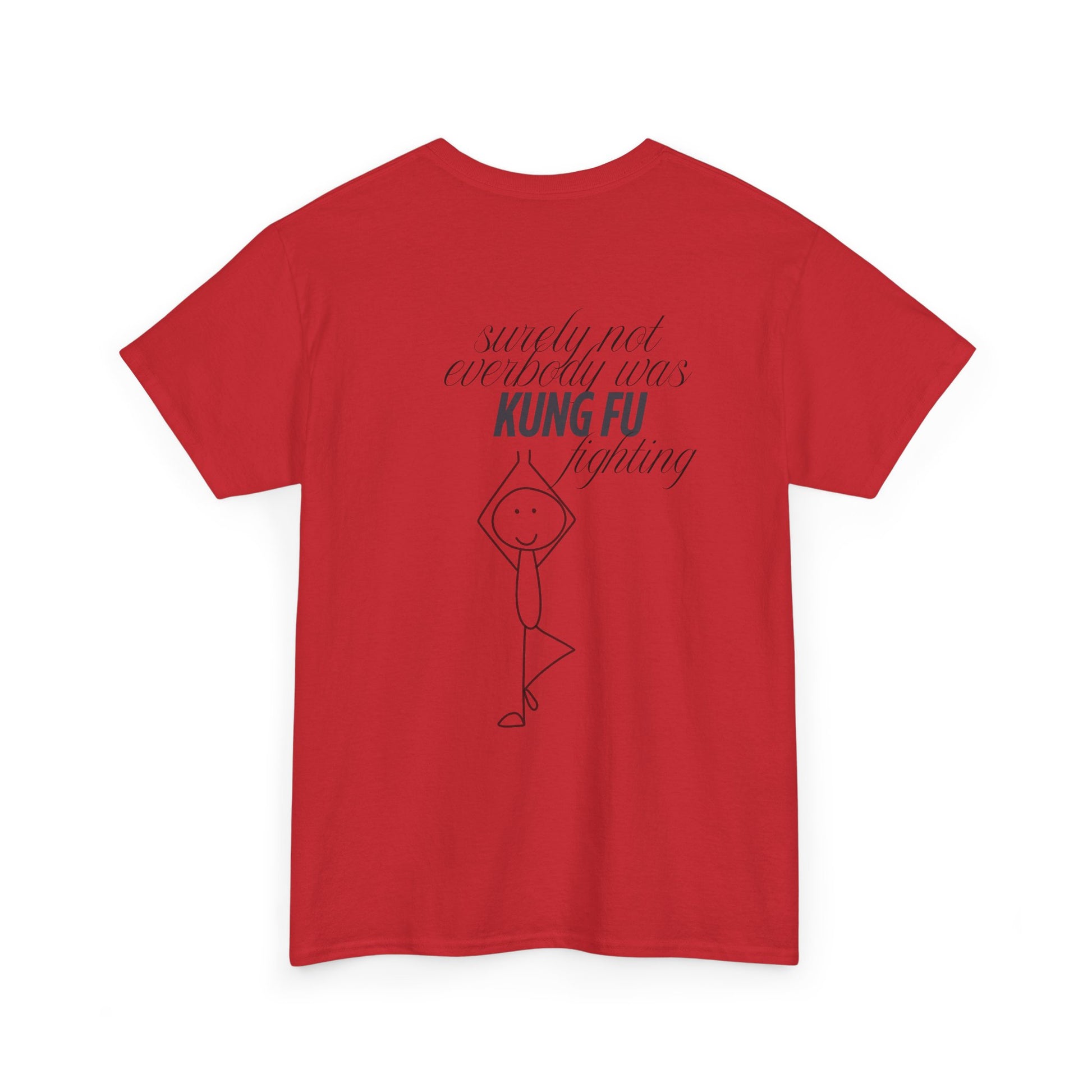 A funny and quirky T-Shirt featuring the phrase 'every body was kungfu fighting'. Perfect for those who appreciate humor and want to add a playful touch to their wardrobe. This T-Shirt is ideal for casual wear and can be a great conversation starter. Relevant for casual outings, parties, and everyday wear.