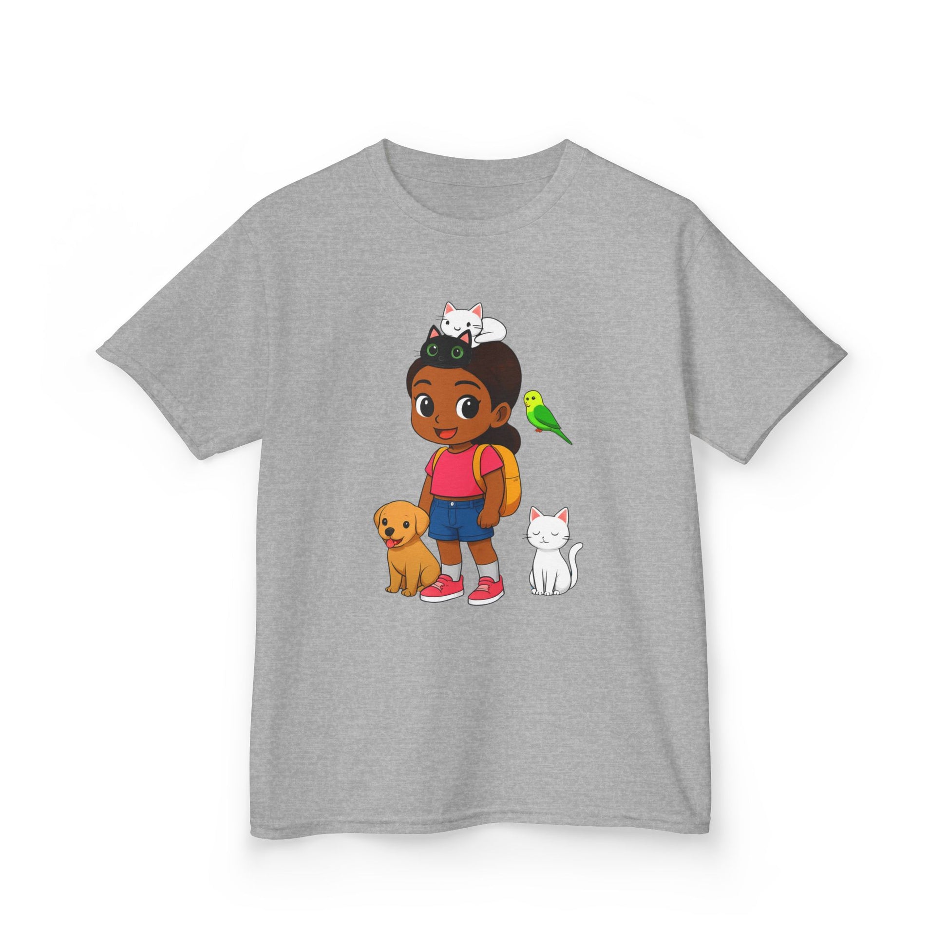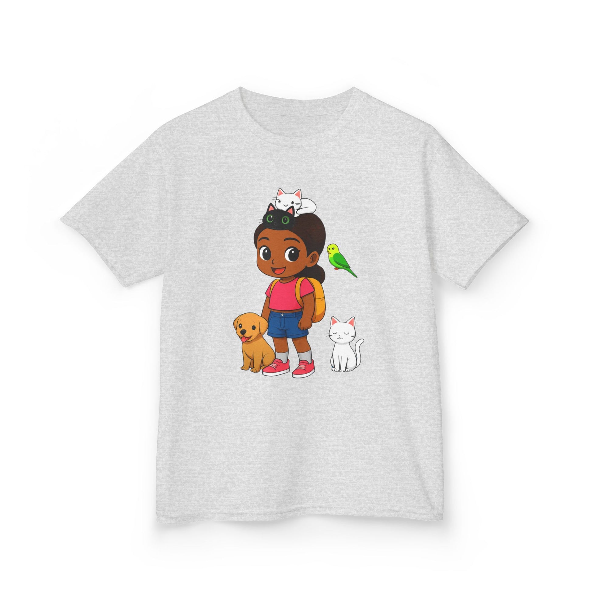 This girl t-shirt is made with 100% US cotton, providing a soft touch perfect for any season. It features a crew neckline, classic fit, and pearlized tear-away labels for comfort. Ideal for daily wear, this t-shirt is ethically produced and Oeko-Tex certified for safety.