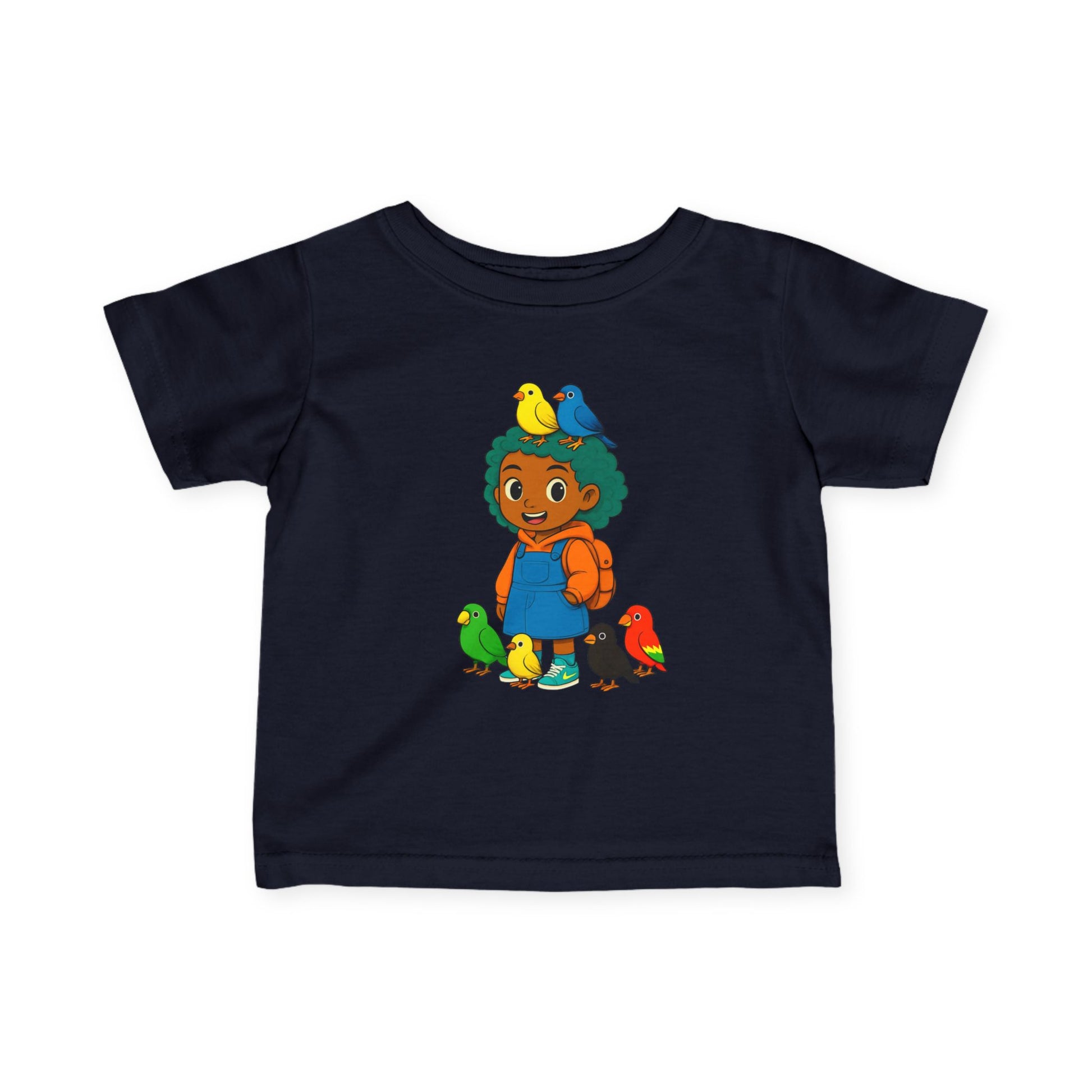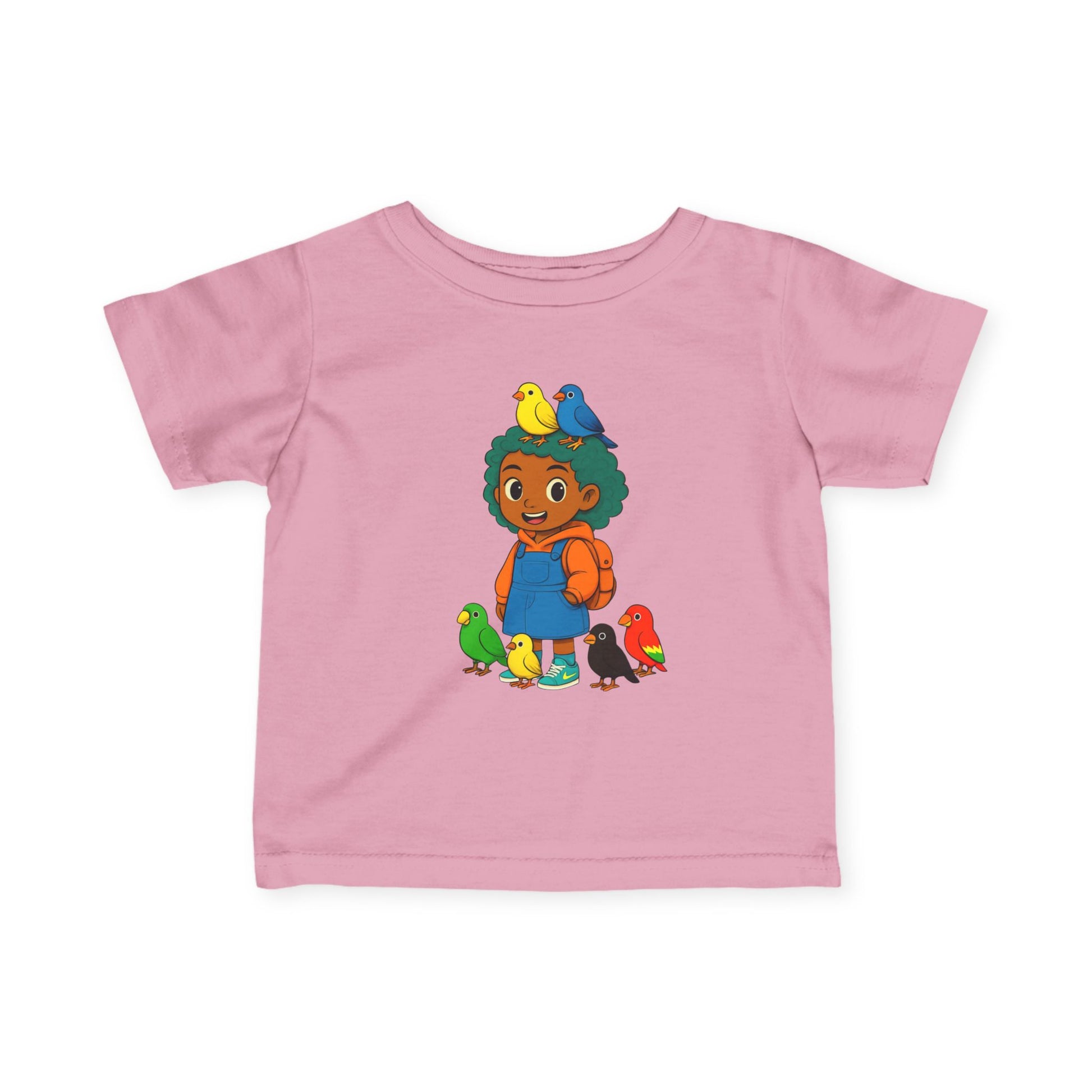 A comfortable and stylish t-shirt for a girl, perfect for everyday wear or special occasions. Made from high-quality fabric with side seams and ribbed knit collar for durability and comfort. Suitable for infants and toddlers, making it a great gift for baby showers or birthdays.