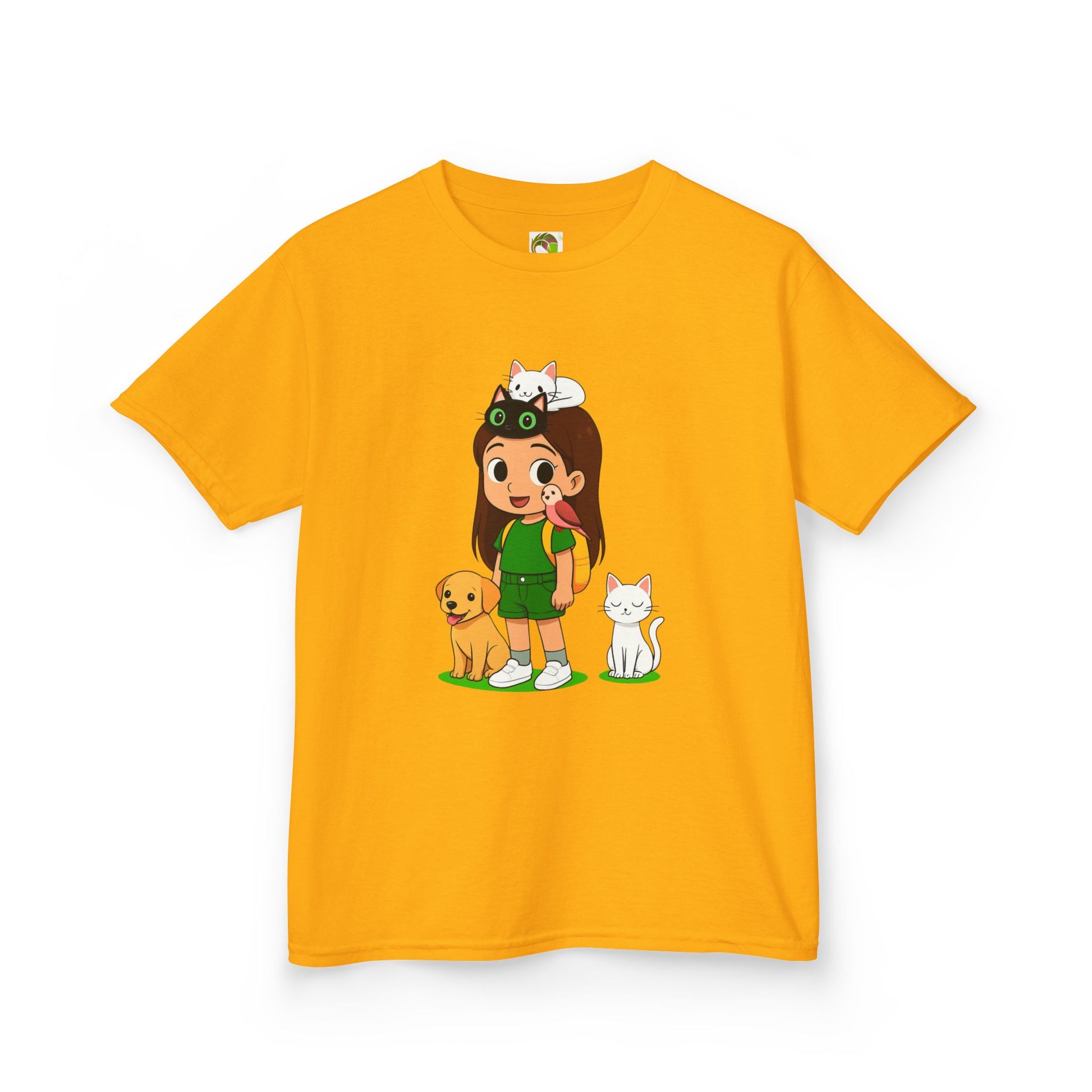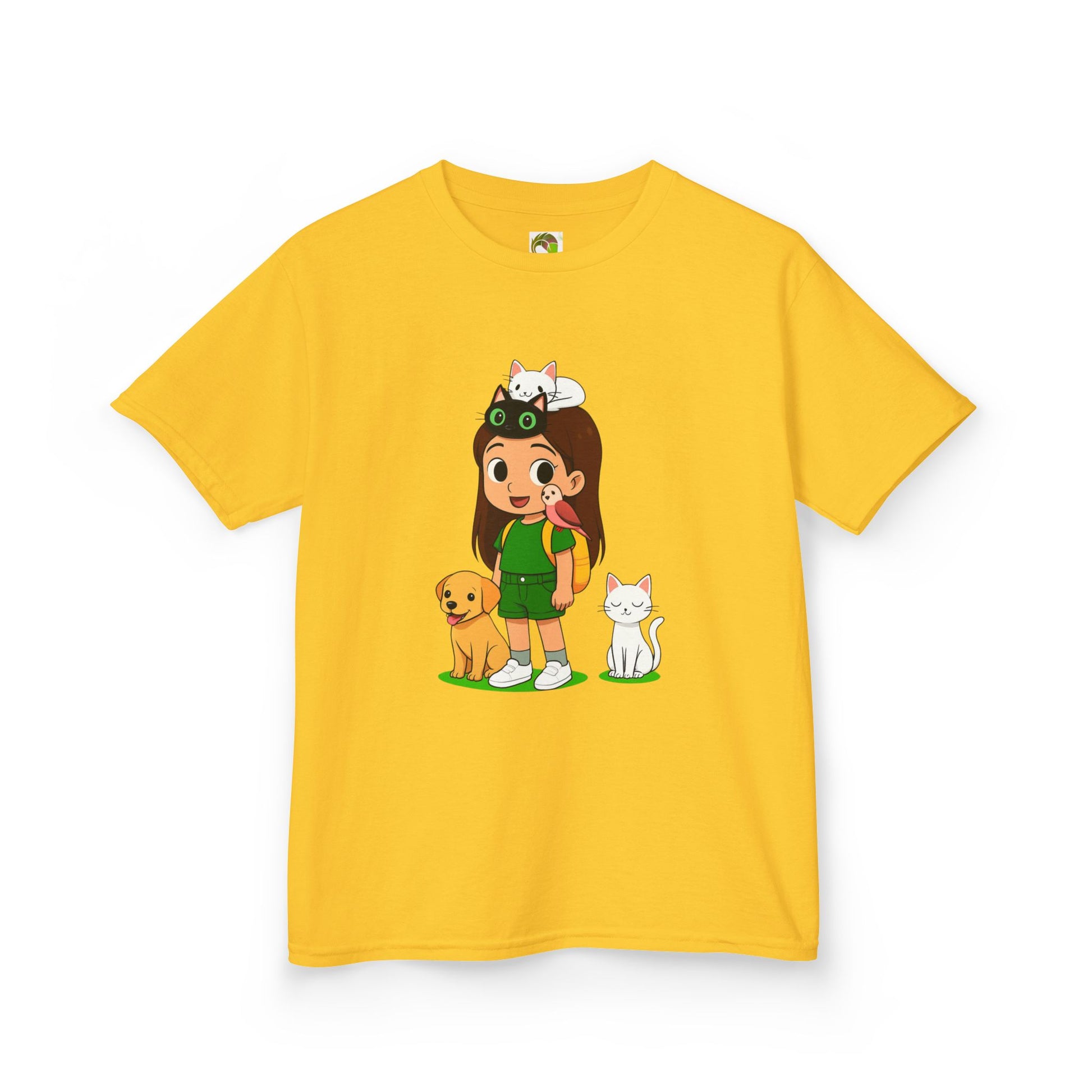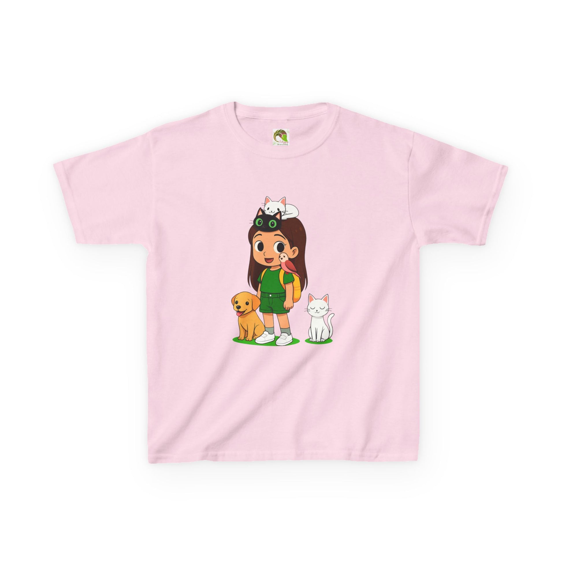 This adorable girl Tee features a cute girl surrounded by animals, perfect for adding a touch of whimsy to a child's wardrobe. Made with 100% US cotton, this tee is soft to the touch and suitable for any season. The crew neckline and classic fit provide a timeless style that is great for daily wear. Ideal for girls, this tee is a great choice for casual outings, playdates, and more.