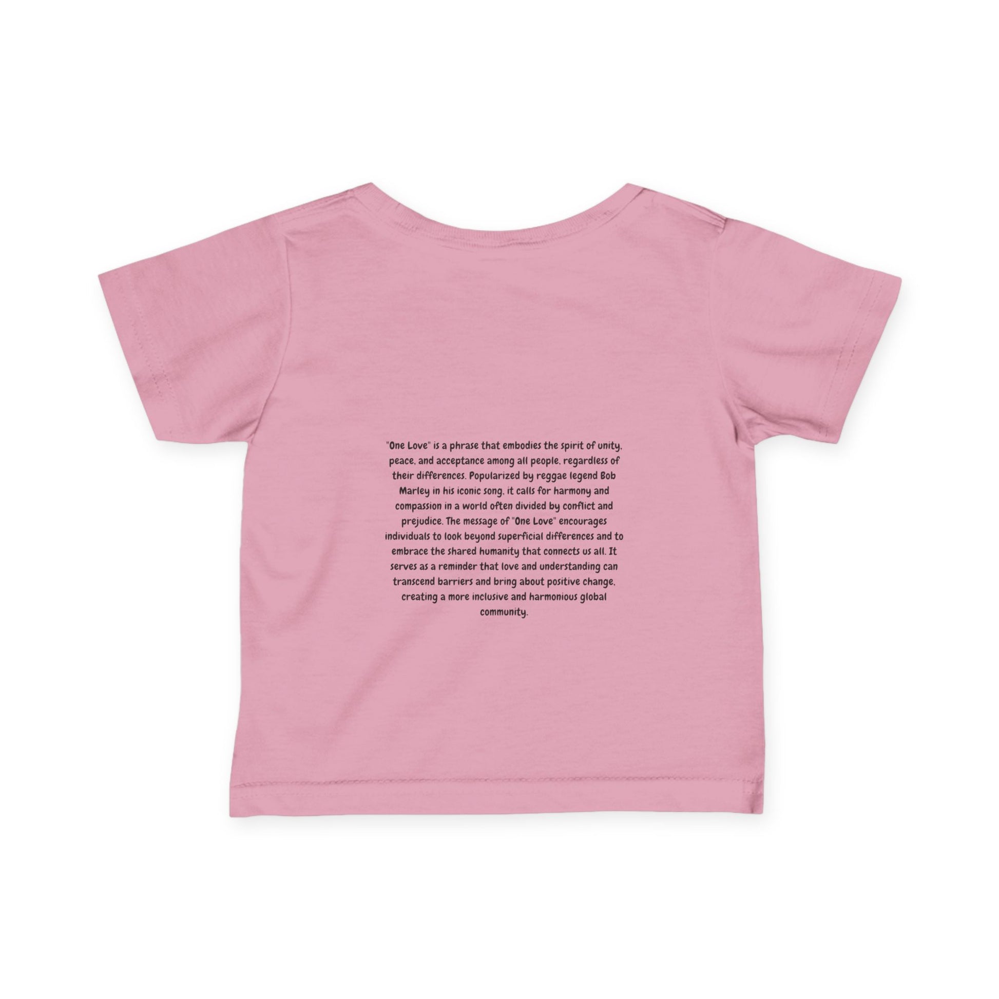 A cute and comfortable infant tee with a message of unity and love. Perfect for little ones to wear and spread positivity. Ideal for parents looking for a meaningful and stylish piece for their child. Relevant for events like baby showers, birthdays, and family gatherings.