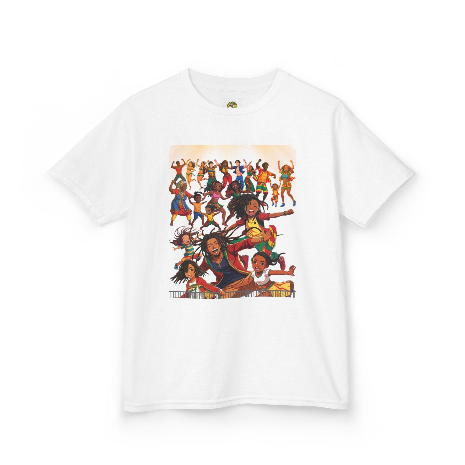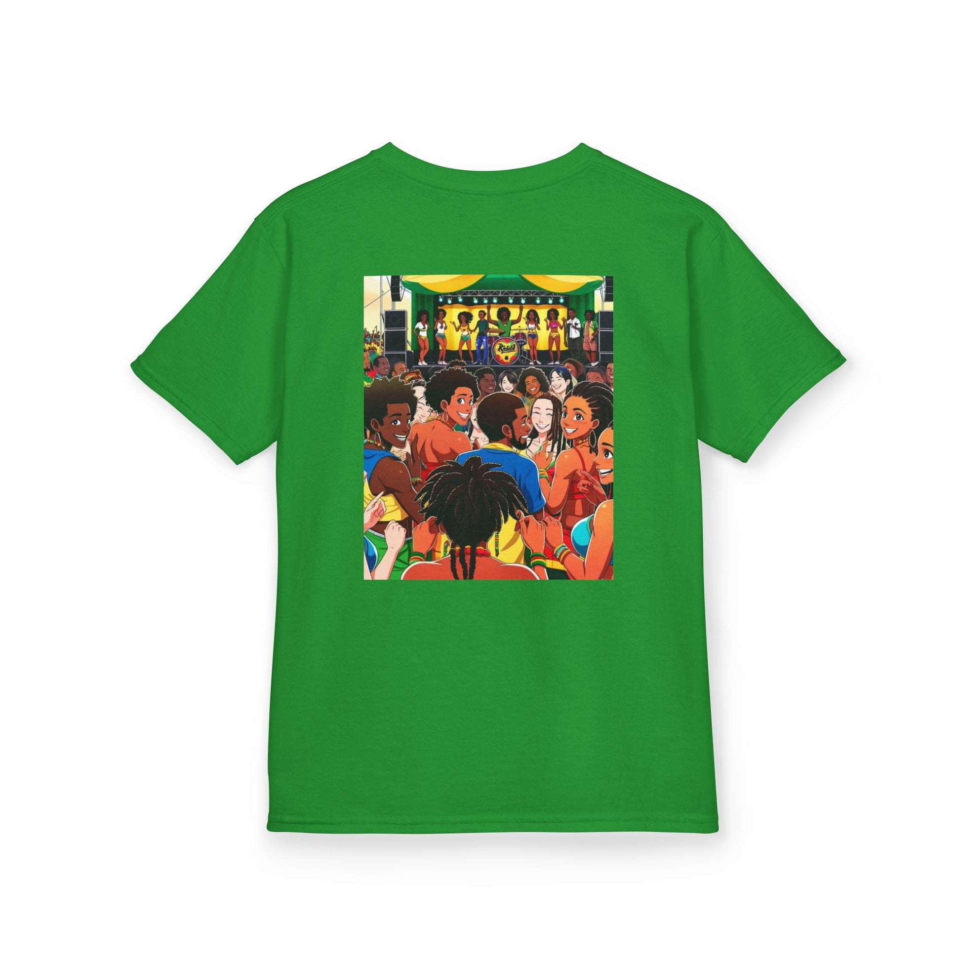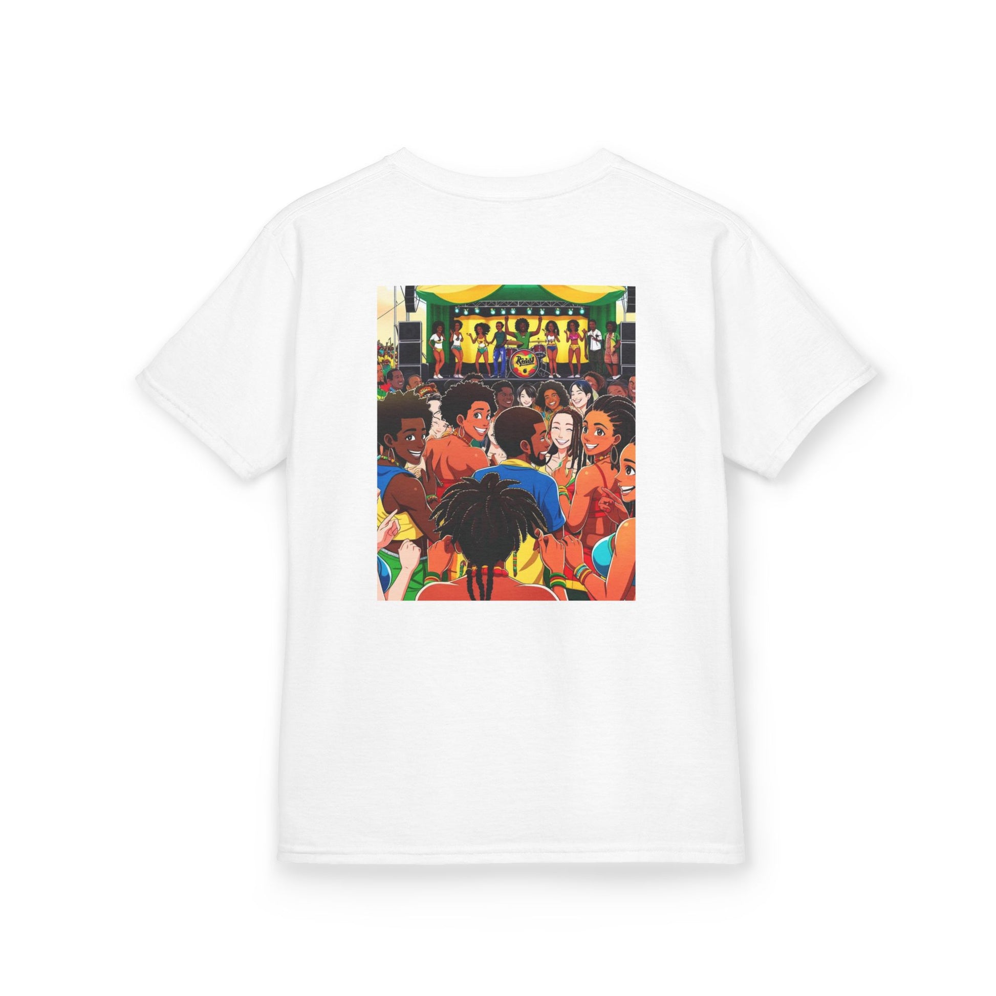 A fun and vibrant kids festival T-Shirt with reggae-inspired design, perfect for bringing a lively and cheerful atmosphere to any child's wardrobe. Ideal for kids who love music festivals and enjoy colorful clothing. Great for summer celebrations, beach trips, and casual outings.