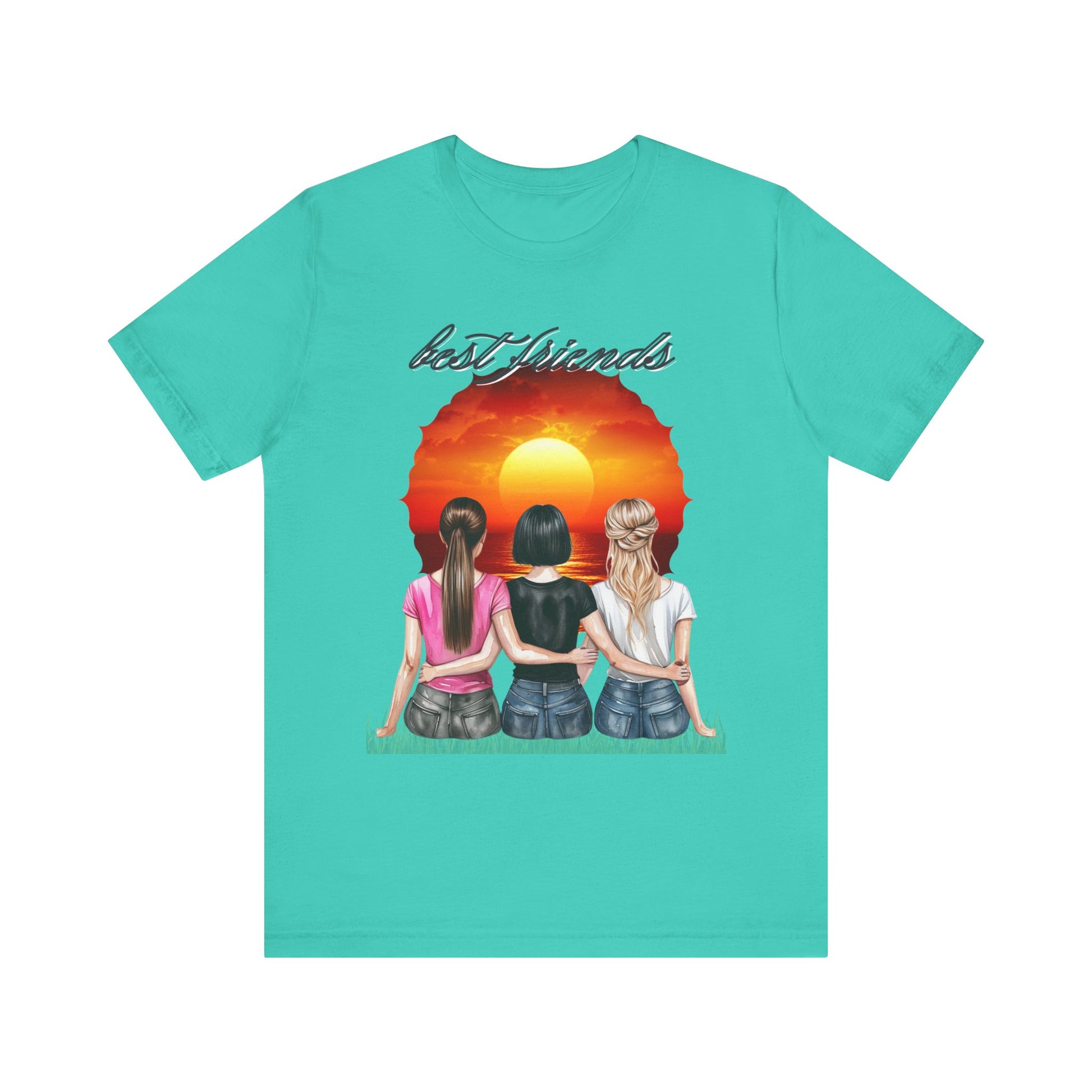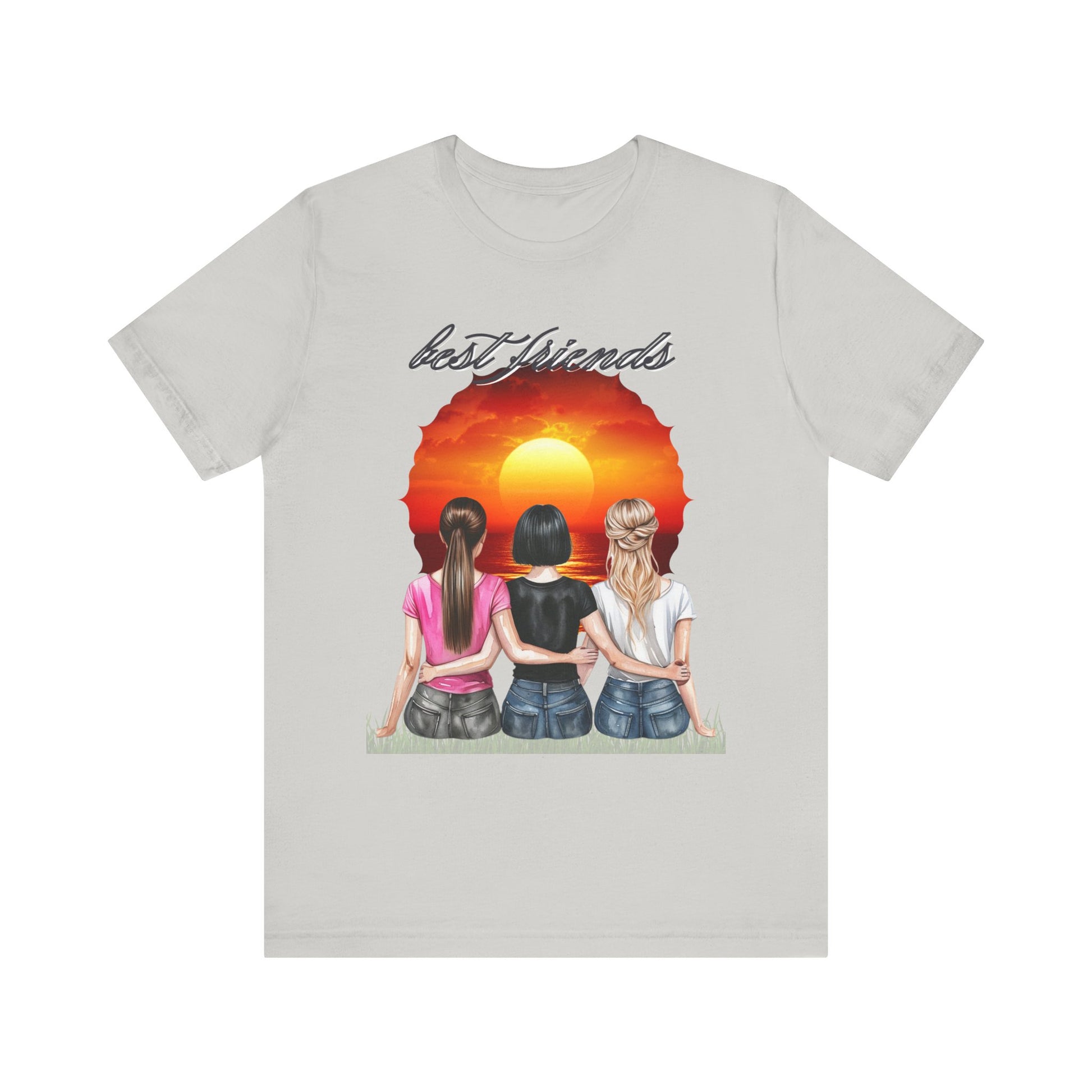 This Tee features a stunning sunset design perfect for best woman friends. It gives a warm and nostalgic vibe, perfect for casual outings or cozy hangouts. Ideal for best friends celebrating special occasions or holidays together.
