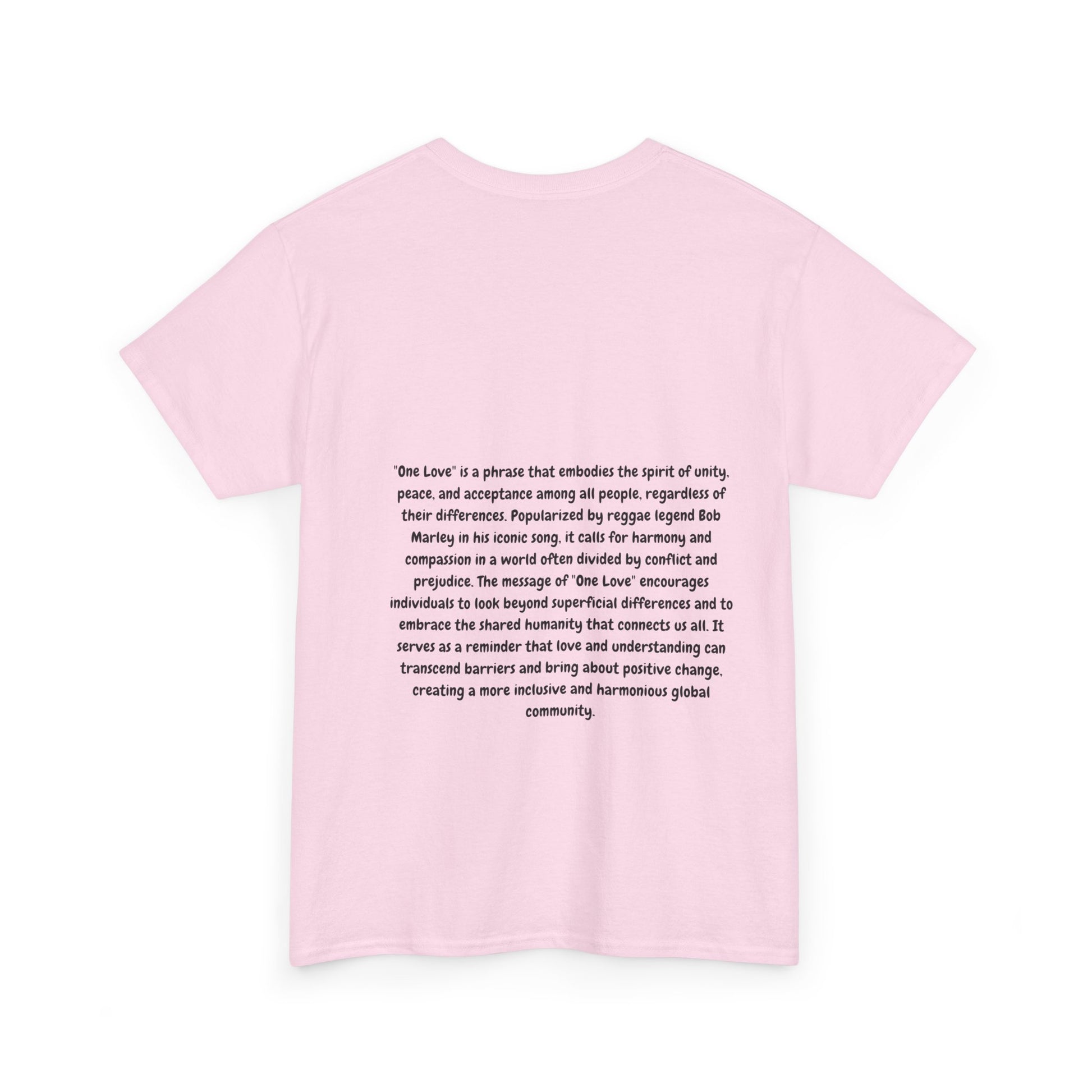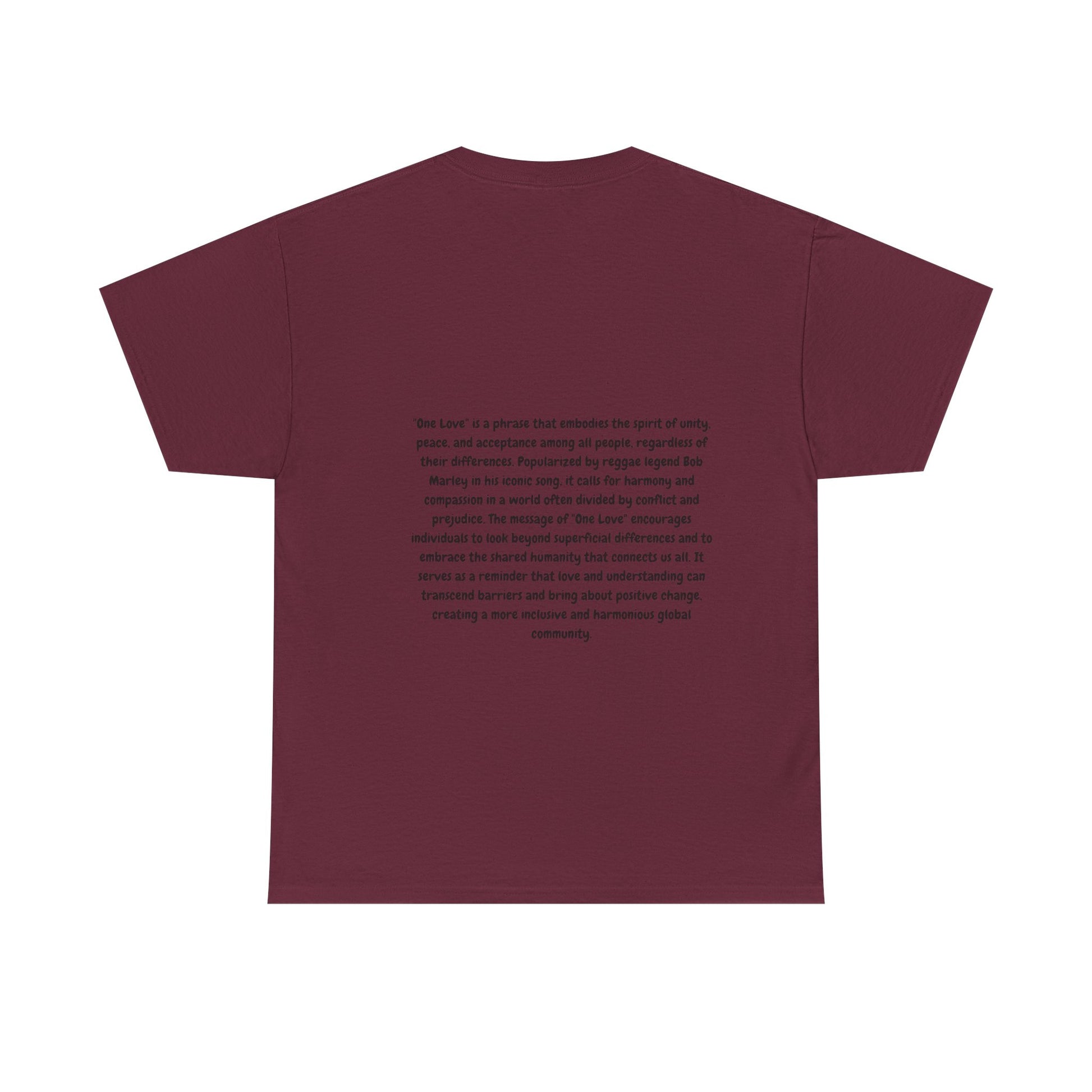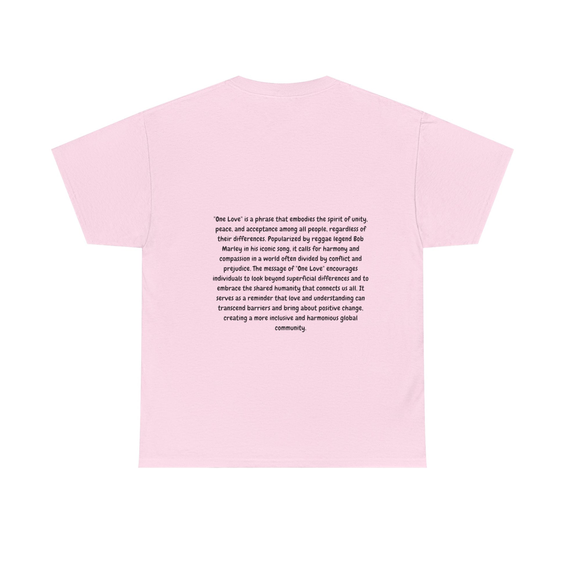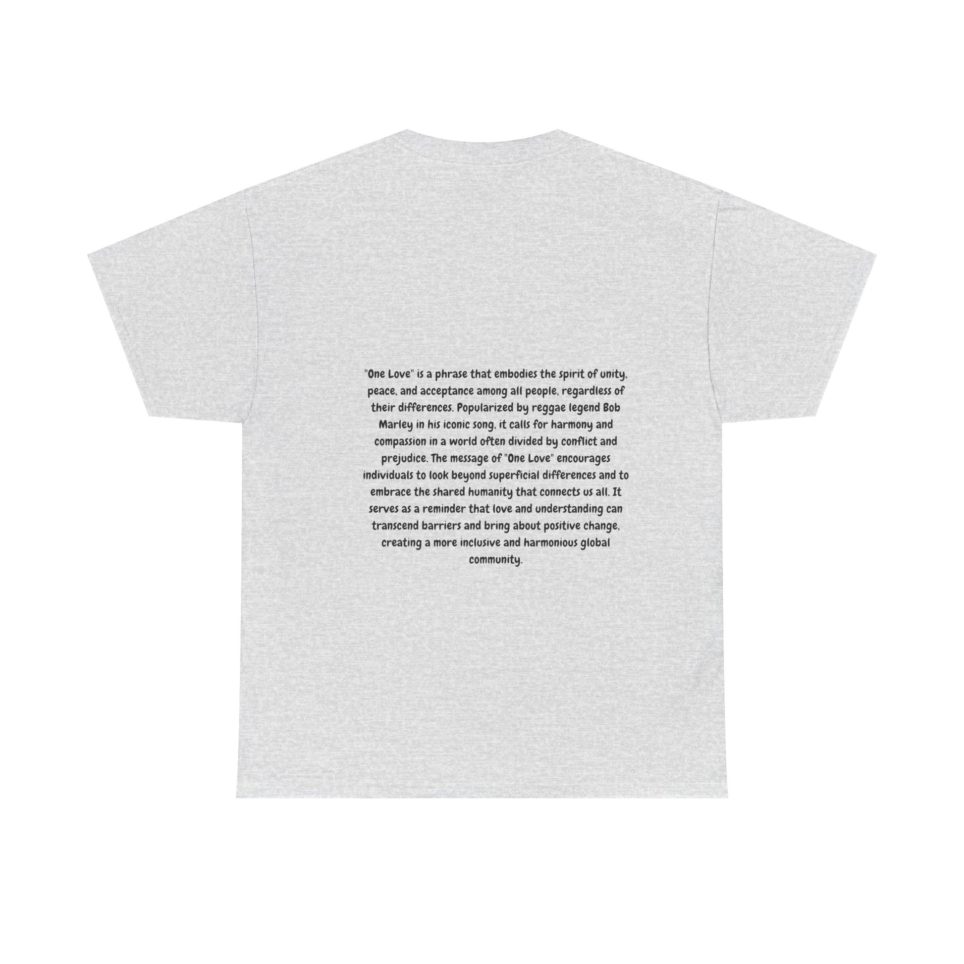 This Tee features a simple yet powerful design with the message 'one love one unity'. It exudes a feeling of togetherness and solidarity, making it a great addition to any wardrobe. Perfect for those who believe in spreading love and unity. Ideal for wearing on casual outings, social gatherings, or as a statement piece during events like International Day of Friendship or World Unity Day.