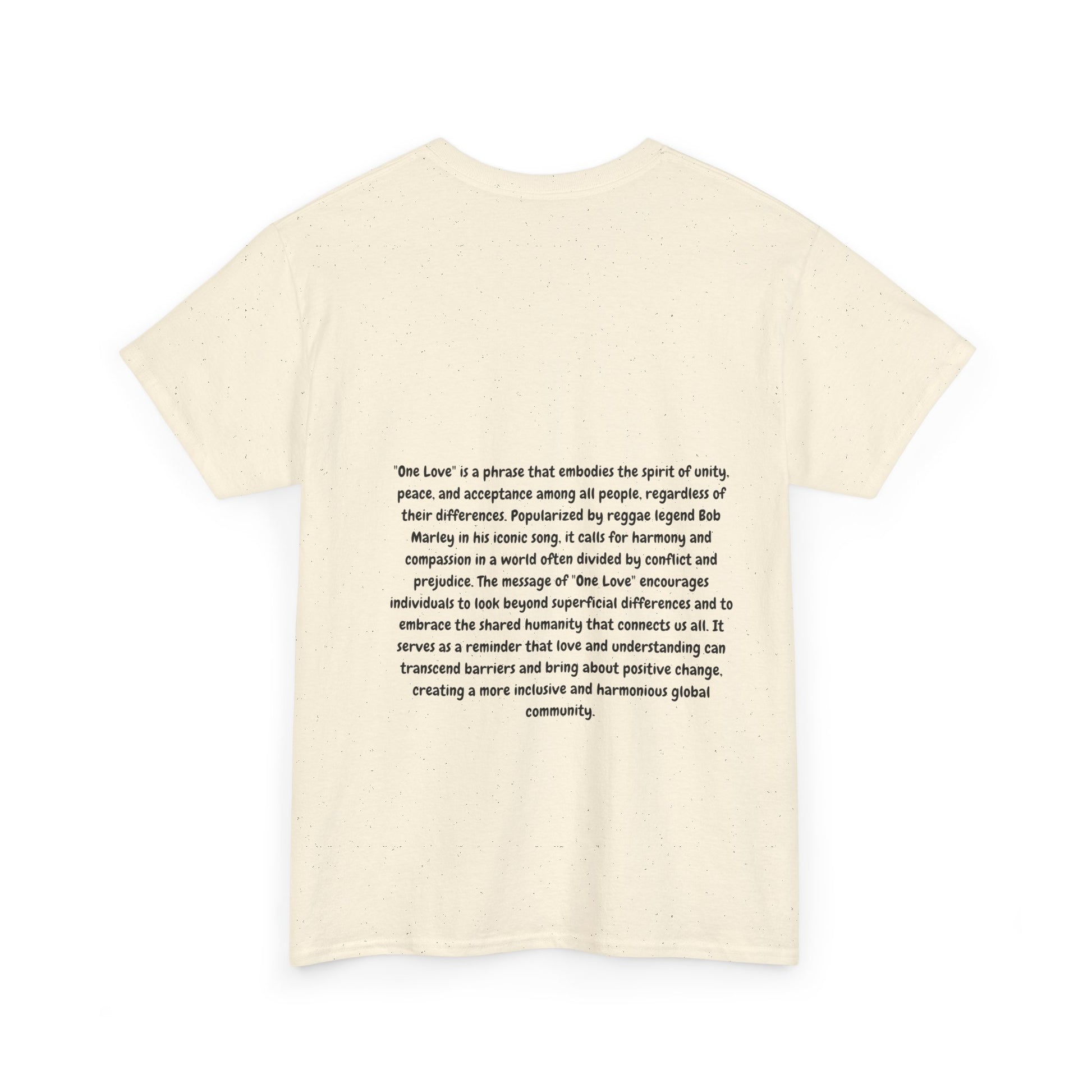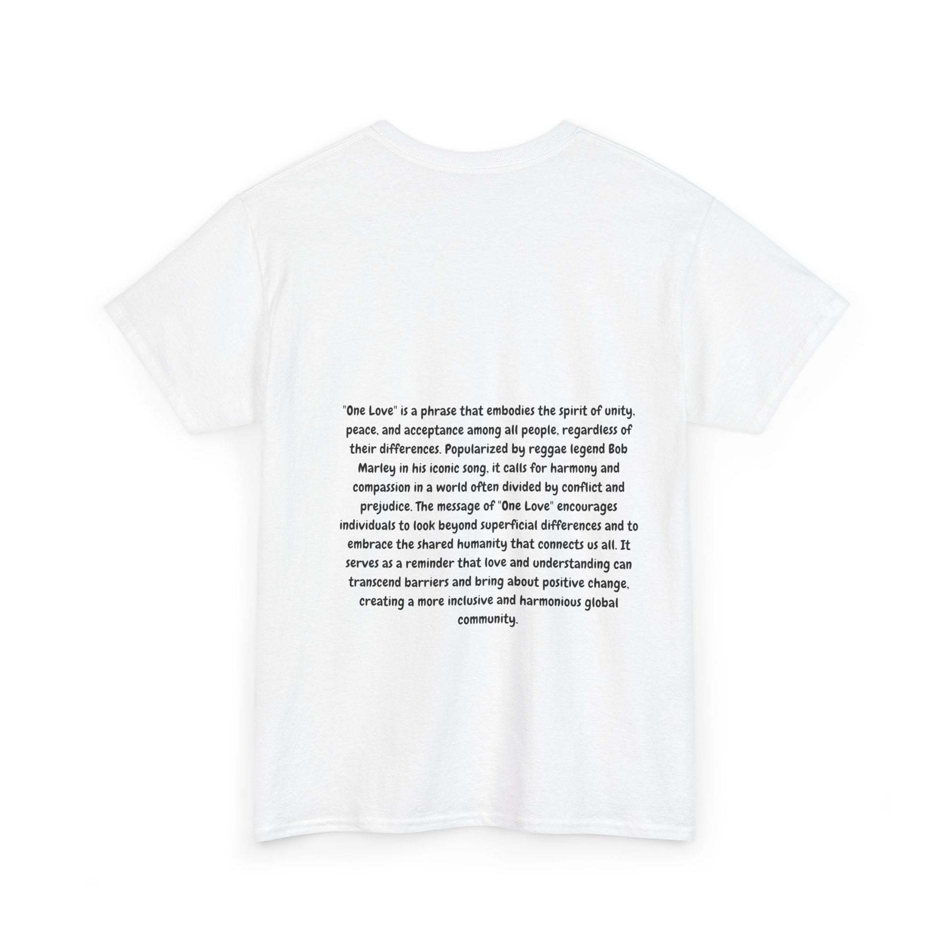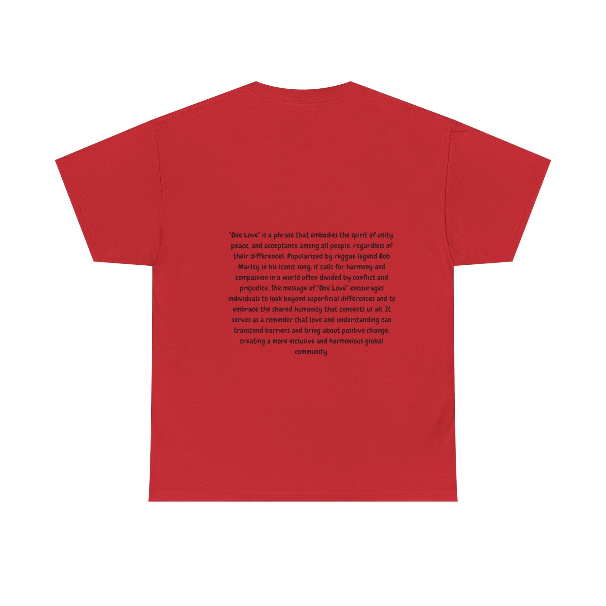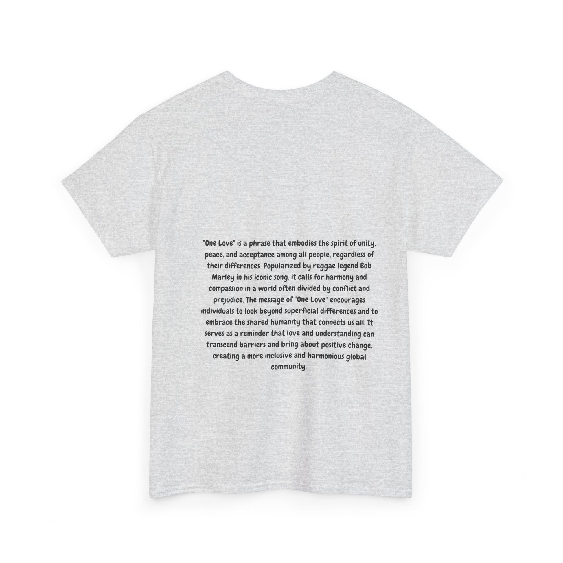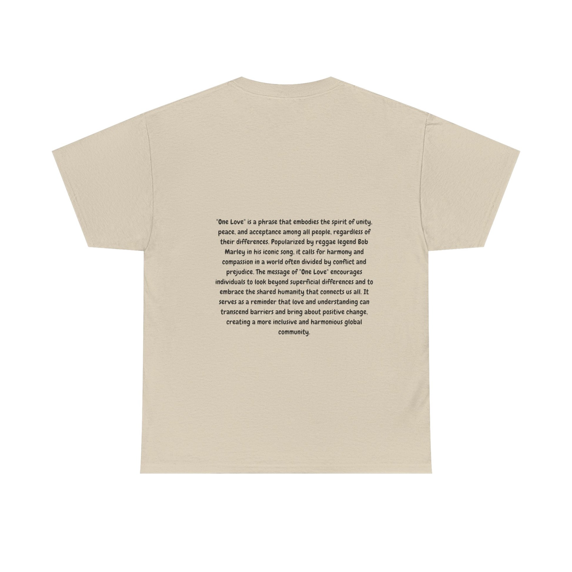 This Tee features a simple yet powerful design with the message 'one love one unity'. It exudes a feeling of togetherness and solidarity, making it a great addition to any wardrobe. Perfect for those who believe in spreading love and unity. Ideal for wearing on casual outings, social gatherings, or as a statement piece during events like International Day of Friendship or World Unity Day.