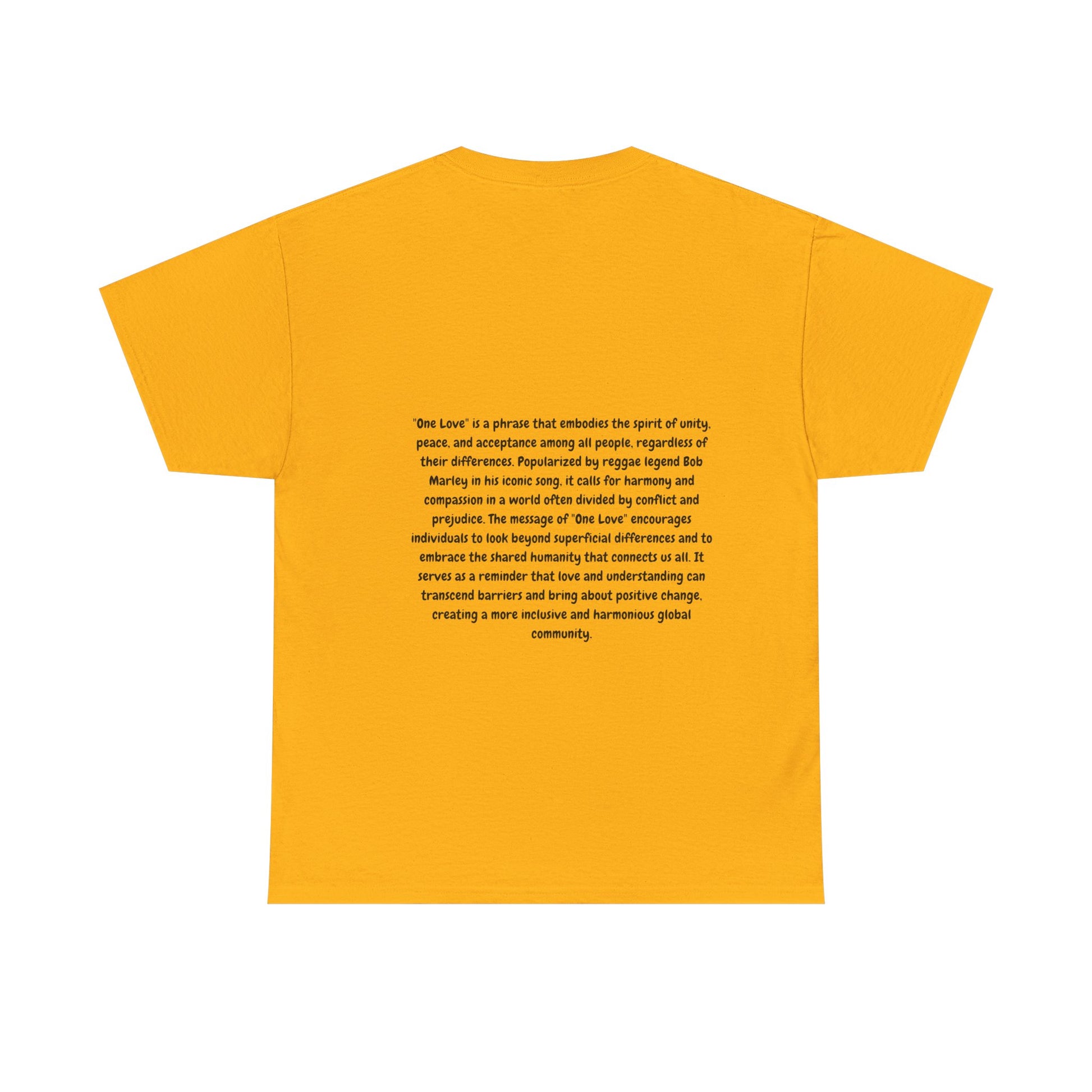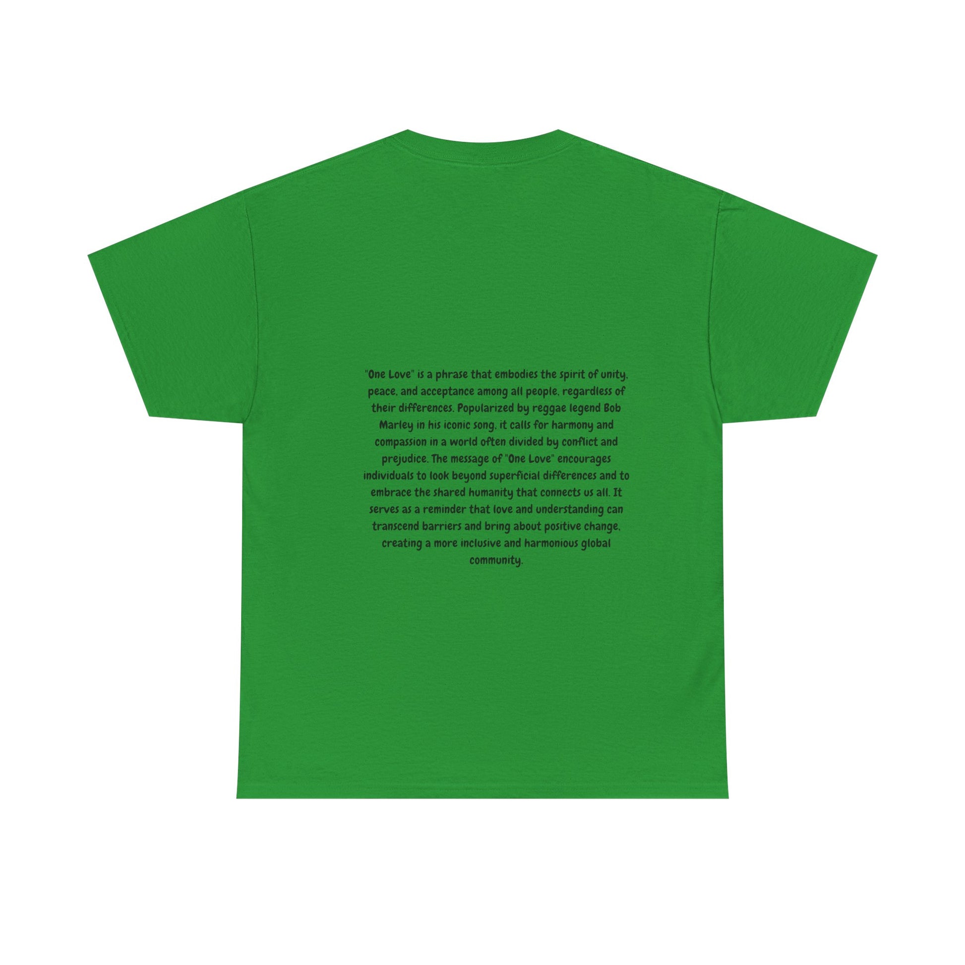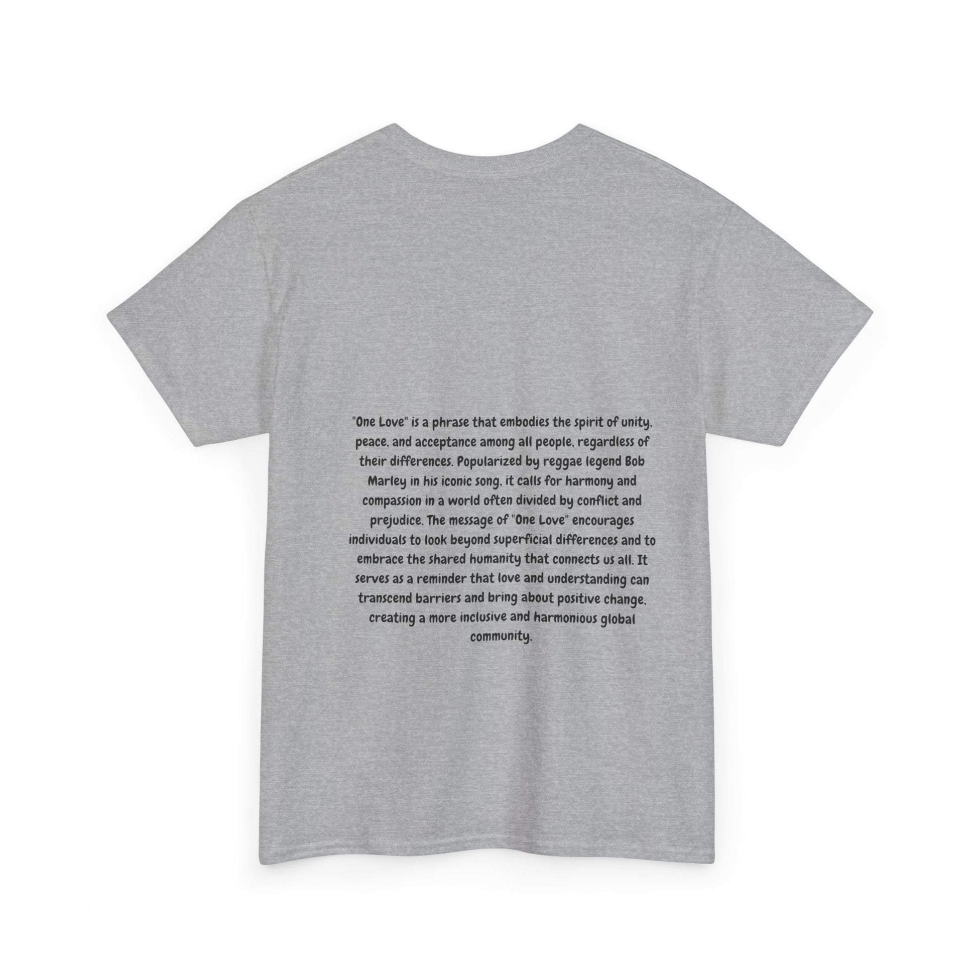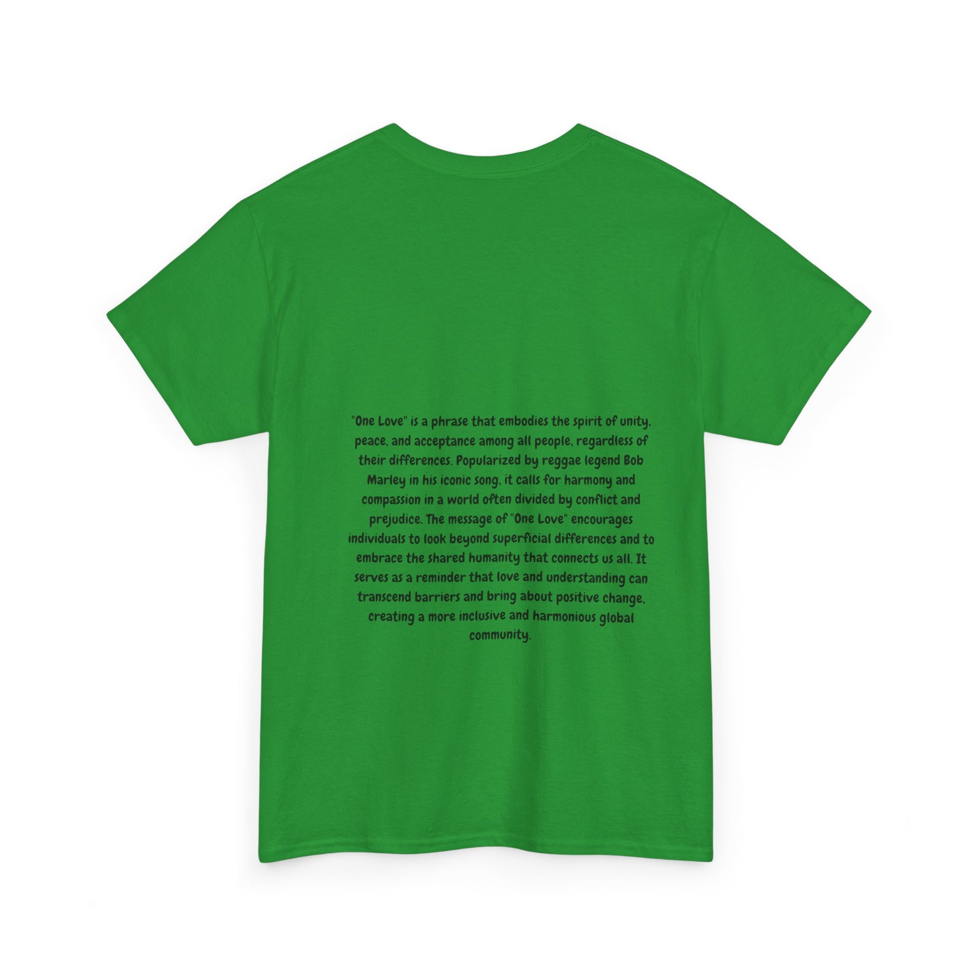 This Tee features a simple yet powerful design with the message 'one love one unity'. It exudes a feeling of togetherness and solidarity, making it a great addition to any wardrobe. Perfect for those who believe in spreading love and unity. Ideal for wearing on casual outings, social gatherings, or as a statement piece during events like International Day of Friendship or World Unity Day.