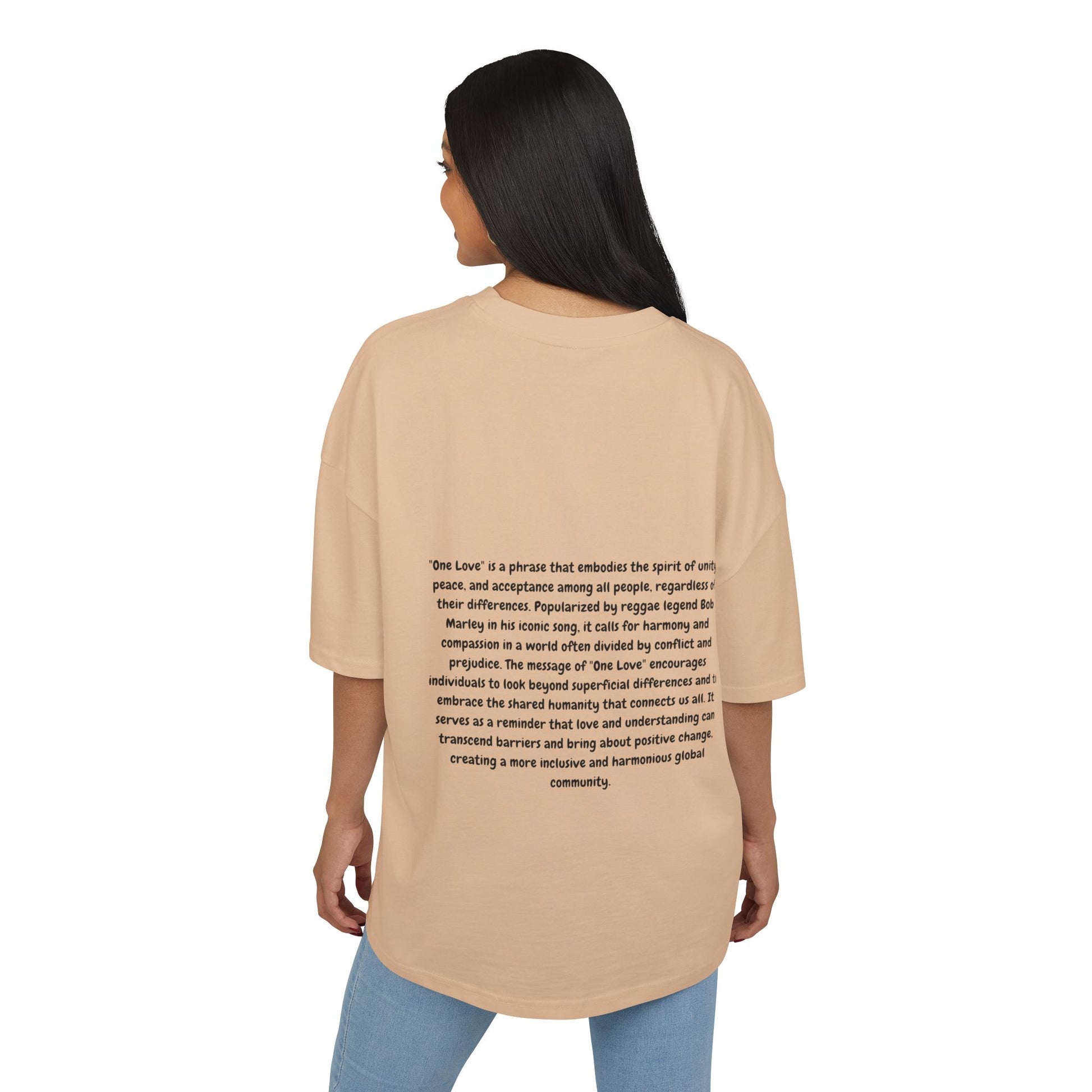 Elevate your wardrobe with this stylish Unisex Ultra Heavy Cotton Box Tee. with one love empowerment. Crafted from 100% cotton, this tee offers a luxurious softness and durability that feels great against the skin. The relaxed vibe is amplified by the boxy fit and dropped shoulders, making it perfect for casual outings or lounging at home. Ideal for anyone seeking comfort without compromising on style, this piece is also a great gift for friends and family. It’s perfect for holidays, music festivals, or just celebrating unity and love in everyday life. Whether you're dressing up or down, this tee seamlessly fits into your lifestyle, promoting a message of harmony and togetherness.