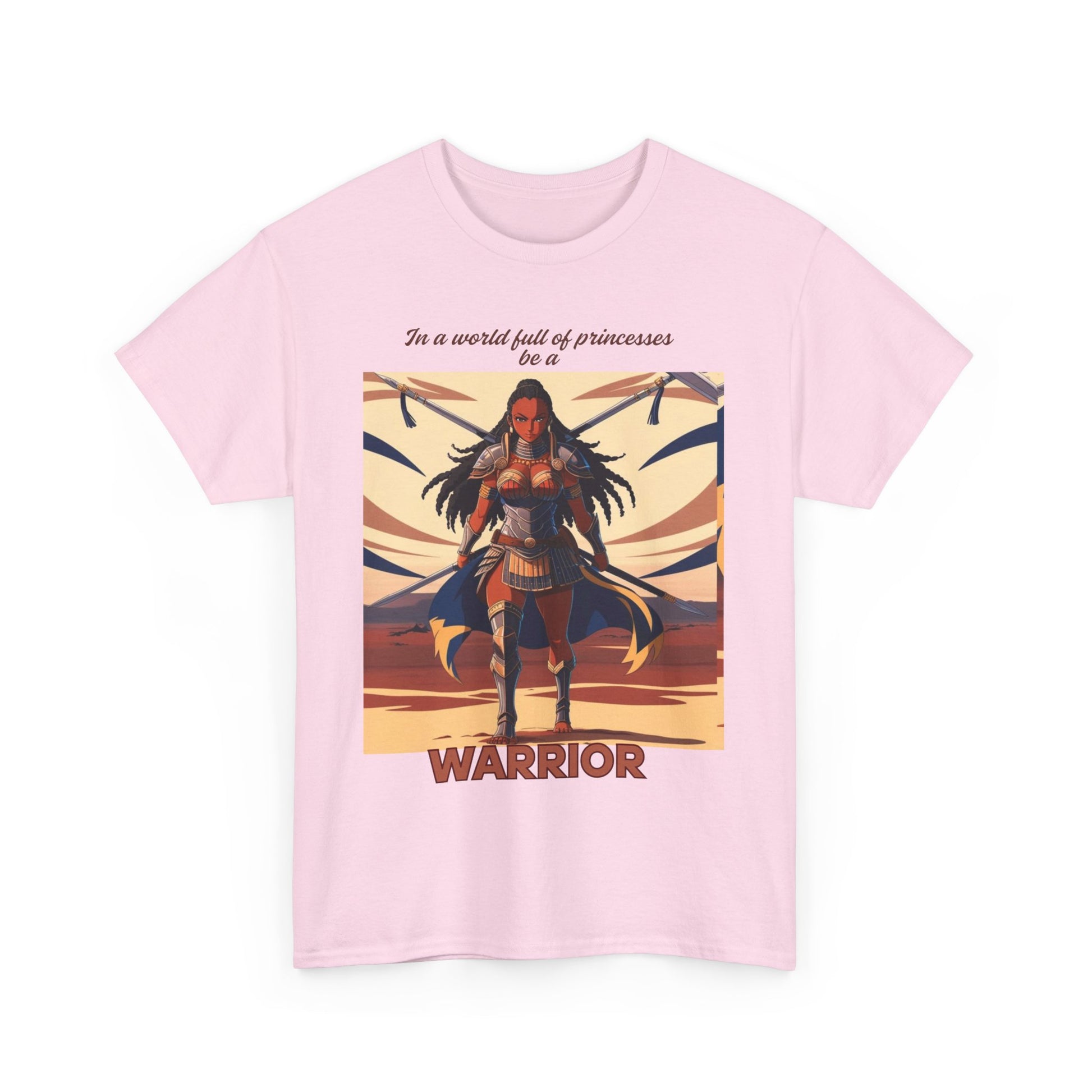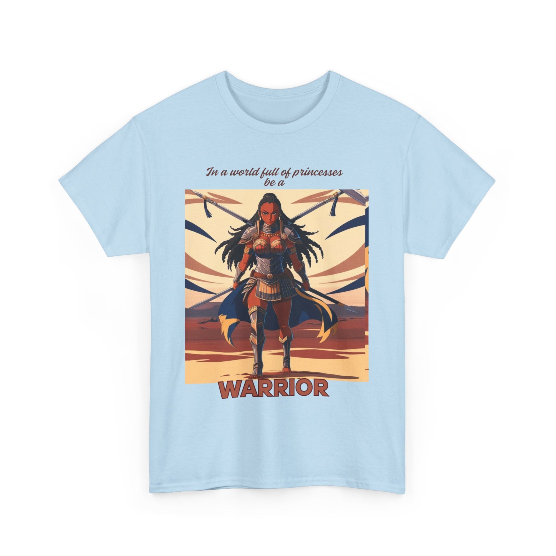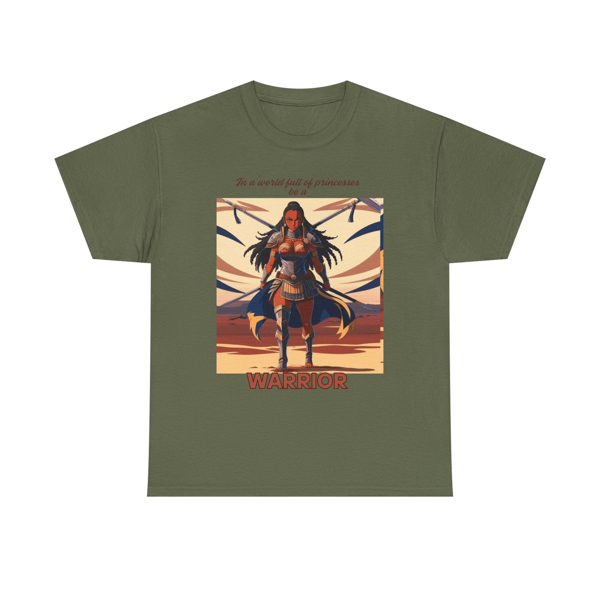 This African warrior-themed T-Shirt exudes a powerful and bold vibe, perfect for those who appreciate cultural and historical designs. Ideal for those looking to make a statement with their clothing, this tee can be worn casually or dressed up for a unique style. Relevant for cultural events, Black History Month, and African heritage celebrations.